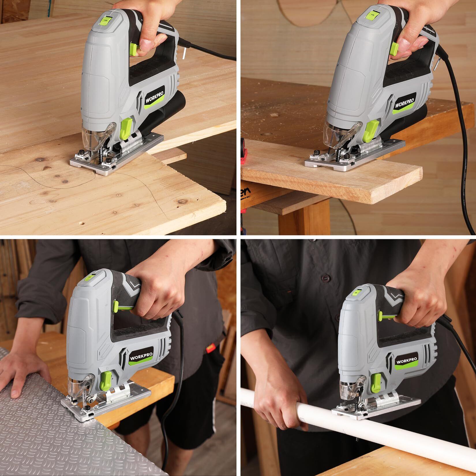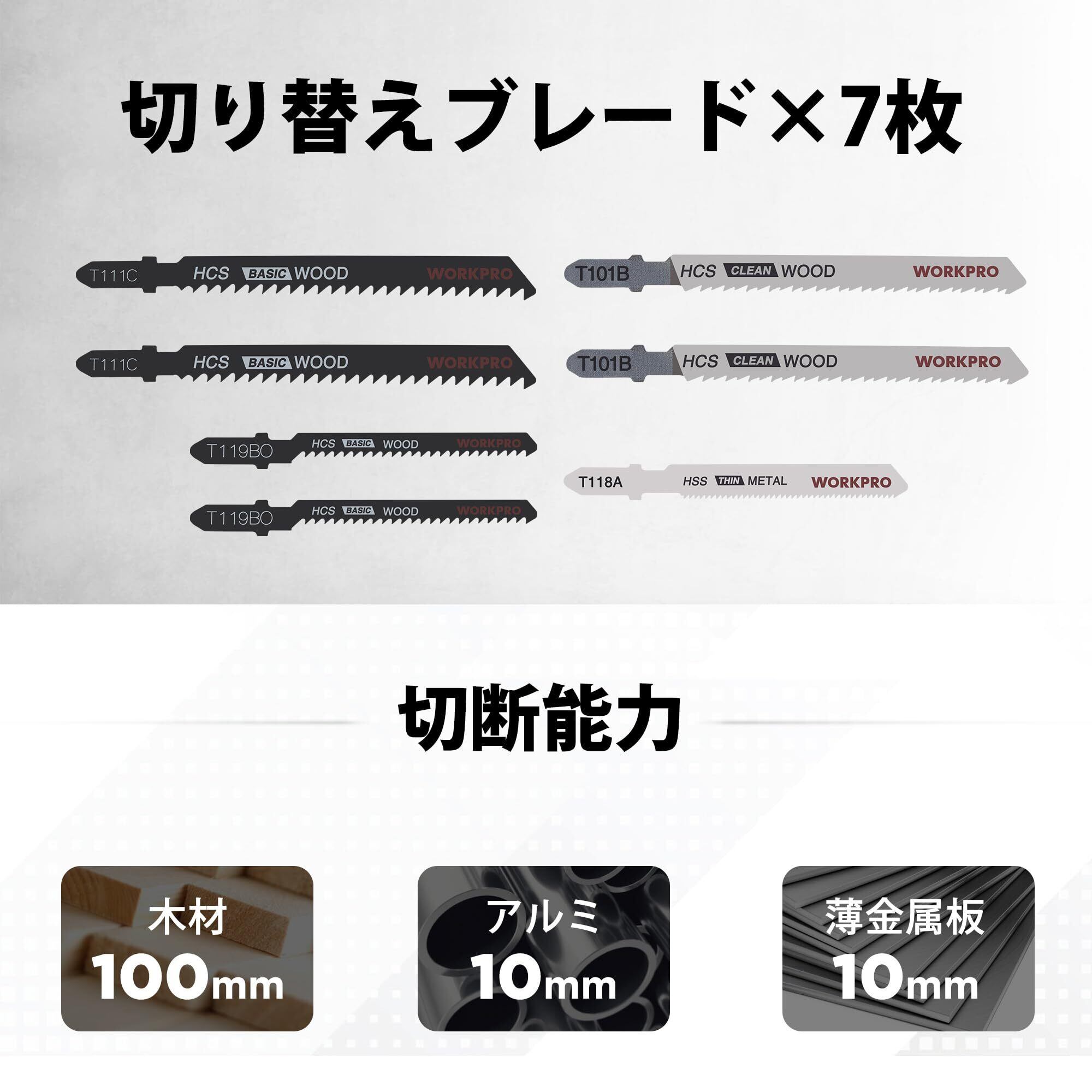 WORKPRO ジグソー 電動ジグソー 600W 傾斜 曲線切断 ダイヤル式6段変速 オービタル4段階調節 ワンタッチ切替 木材 プラスチック 金属切断用 除塵 吸引・吹き出し掃除機能 透明保護カバー付き ブレード7本&定規付き 木工 DIY作業 取扱説明書付き | BASE SHOP