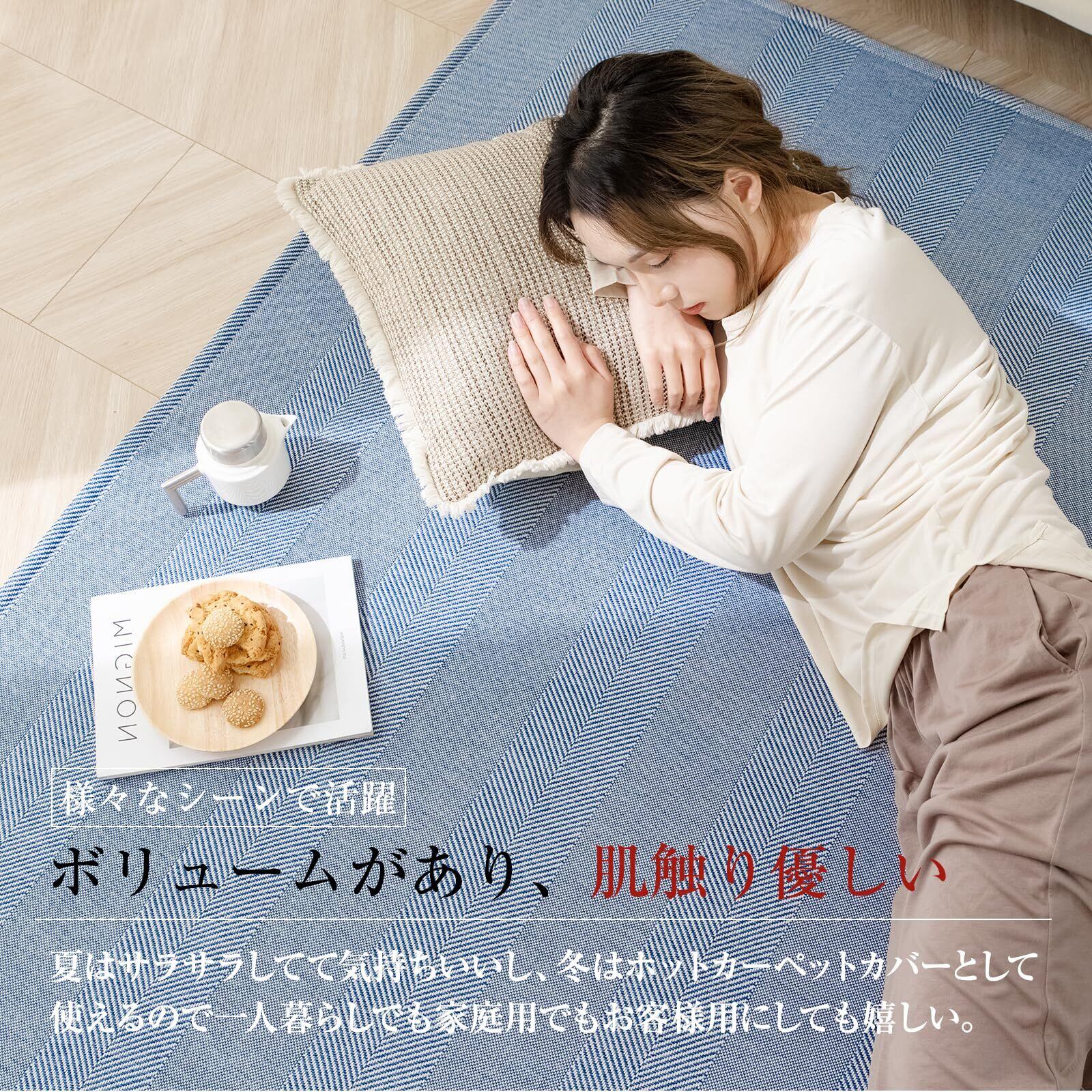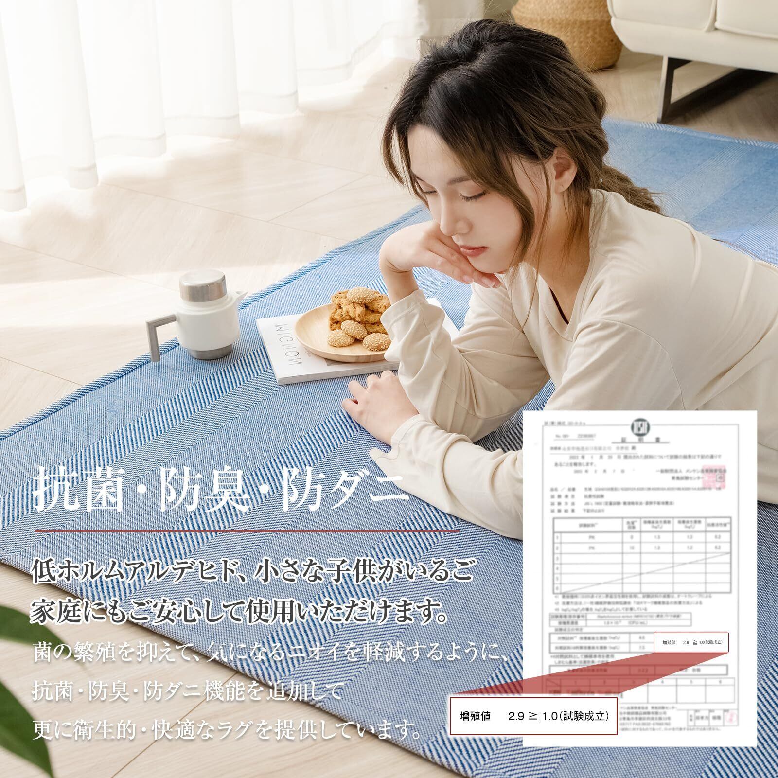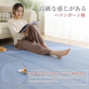 Sun Deco ラグ カーペット 2畳 ラグマット ヘリンボーン柄 おしゃれ 滑り止め 洗える 春 夏 オールシーズン快適 リビングマット 北欧 床保護 ホットカーペット対応 無地 185x185cm ブルー