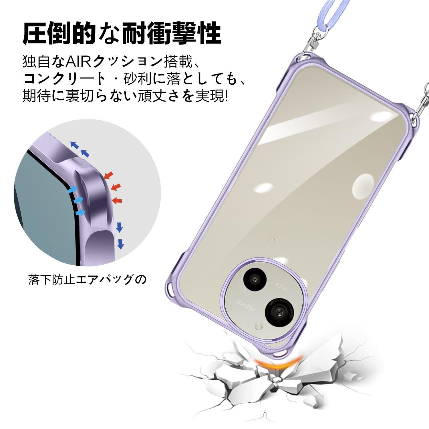 AQUOS R9 / R10 用 ケース クリア ショルダー aquos r9 SH-51E / aquos r10 SH-51F スマホケース アクオス R9 R10 カバー 肩掛け 斜めかけ 縄掛けケース 透明 薄型 軽量 TPU 紐付き 斜めがけ 織りストラップ付き ネックストラップ ショルダー ケース 縦/横 2WAY 長さ調整可能 取り外し可能 落下防止 紛失防止 (パープル) | BASE SHOP