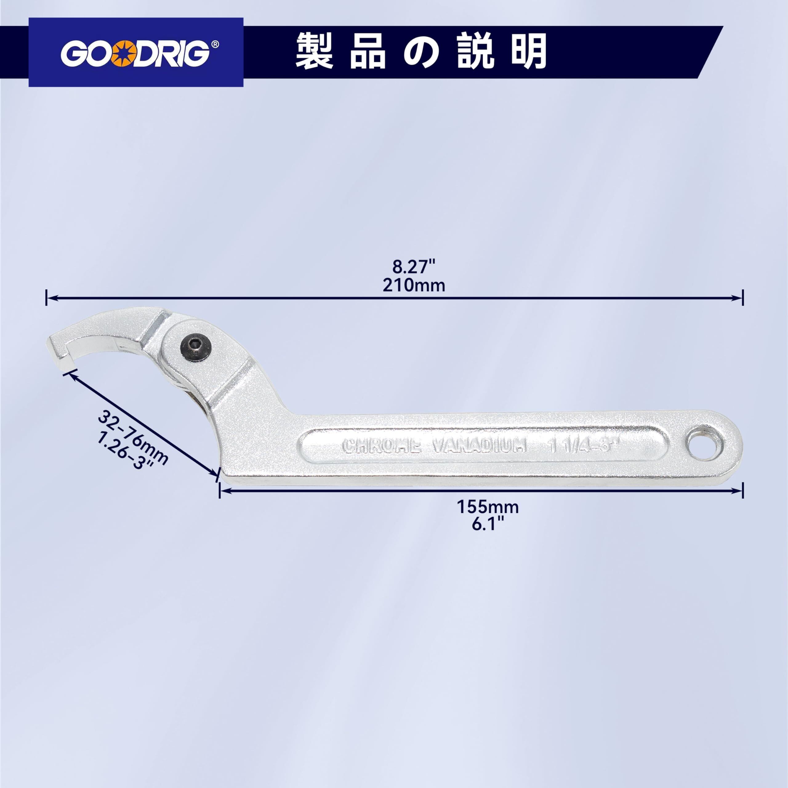 GOODRIG フックレンチ 車両高さ調節フックレンチ C型レンチ ロックナットレンチ サイズ調整可能 (M)
