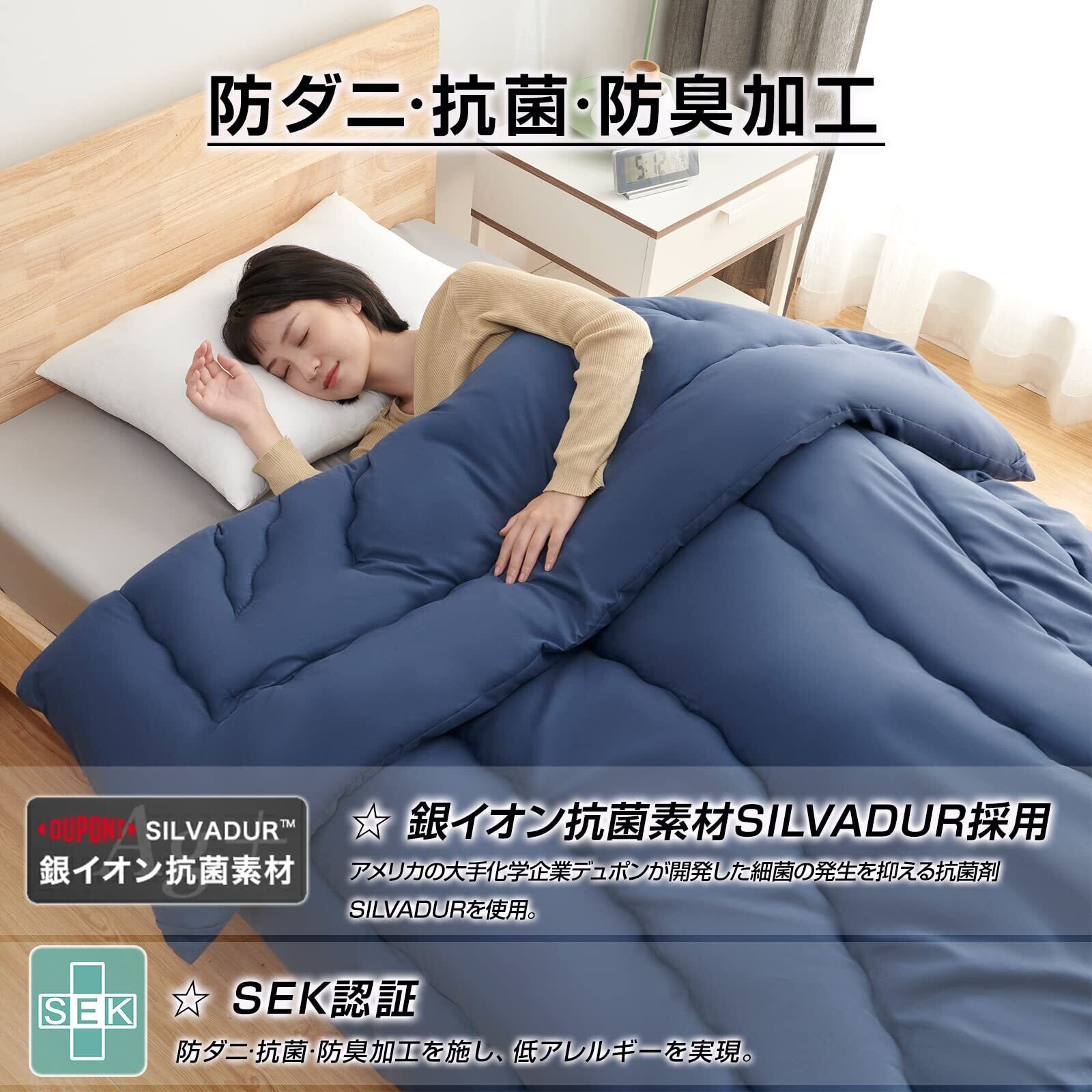 掛け布団 セミダブル 肌掛け布団 オールシーズン 洗える 掛けふとん かけ布団 柔らかな肌触り ほこりが出にくい 通気性 軽量 抗菌防臭 ふとん 合掛け布団 掛布団 【SEK衛生認証 Ag+銀イオン抗菌素材 アレルギー対策】 170x210cm ネイビー (中綿約1.2KG)