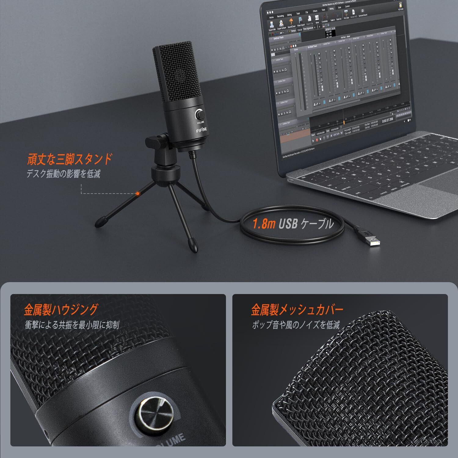 FIFINE USBマイク コンデンサーマイク PC用マイク ネット通話 ゲーム配信 在宅勤務 ボイズチャット 単一指向性 音量調節可能 三脚マイクスタンド付属 パソコンのWindows/Mac対応 ブラック K669B
