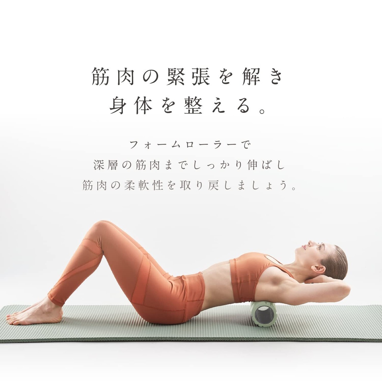 【全身を効率良くほぐすフォームローラー】日常生活の中で私たちの筋肉には様々な負荷がかかり、繰り返し負荷がかかることで筋肉は緊張し凝り固まってしまいます。筋肉が固まった状態になると痛みだけではなく「血行不良」や老廃物が流れにくくなるなどの不調が現れる可能性があり、生活にも支障をきたしてしまう恐れも。フォームローラーに体重を預けて転がすことで、普段の運動では伸ばしにくい深層の筋肉までしっかり伸ばすことができます。筋肉の緊張を取り除くことで身体のバランスを整えることが出来ます。