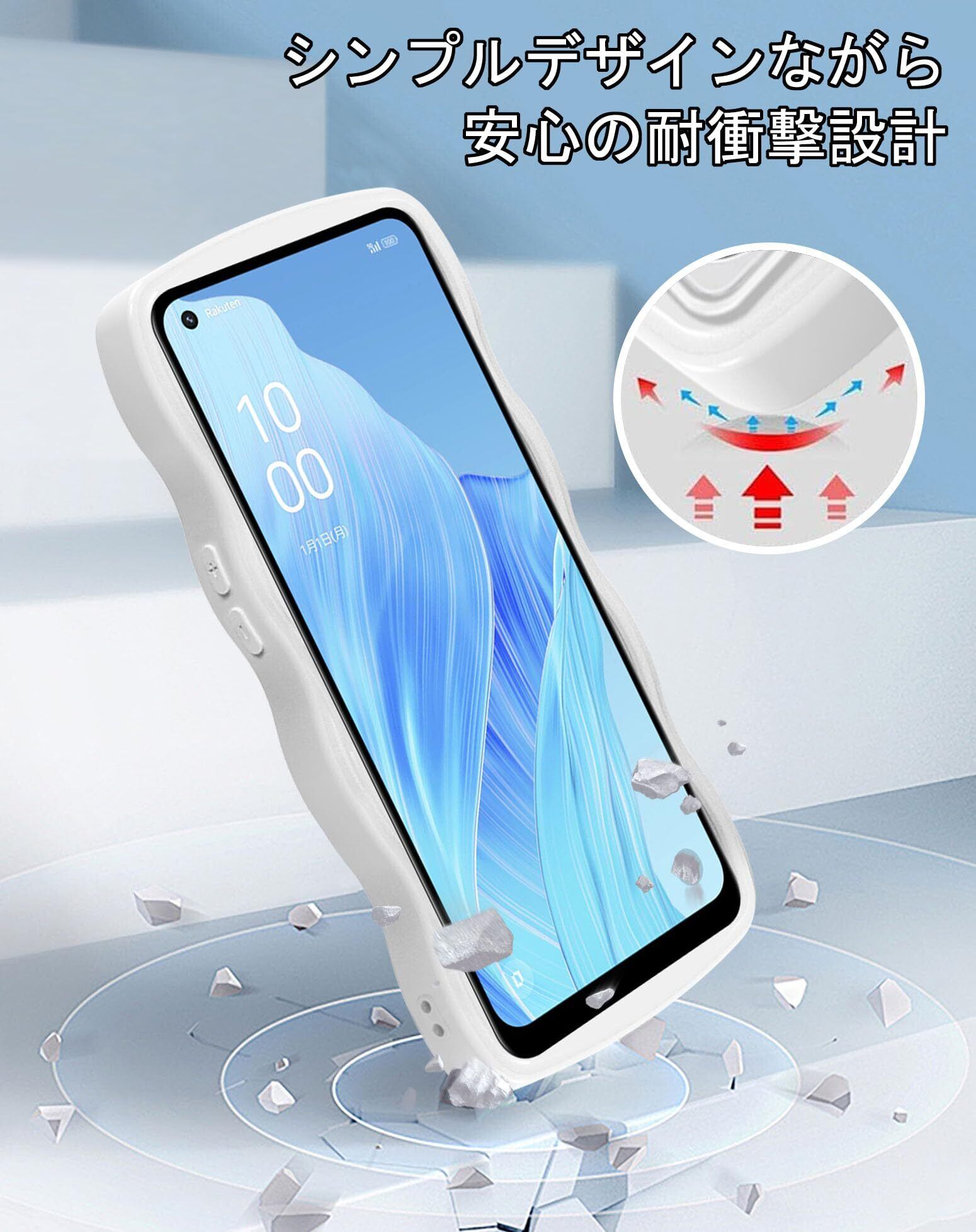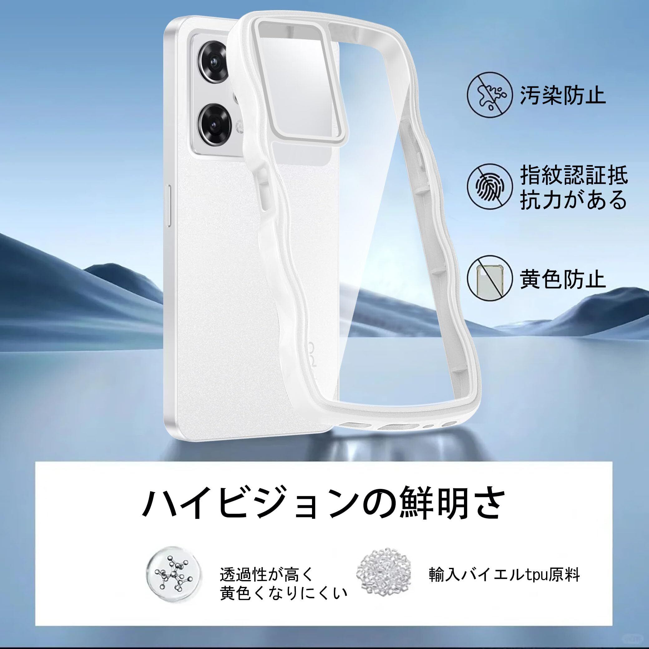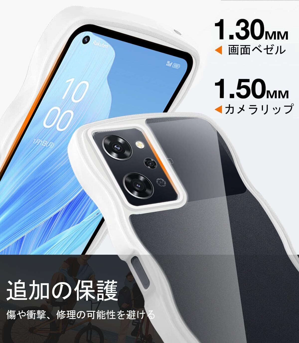 クリア OPPO Reno9 A/OPPO Reno7 A ケース かわいい 波状フレーム うねうね 耐衝撃 OPG04 スマホケース 滑り止め 人気 可愛い カバー 落下防止 ワイヤレス充電対応 (ホワイト) | BASE SHOP