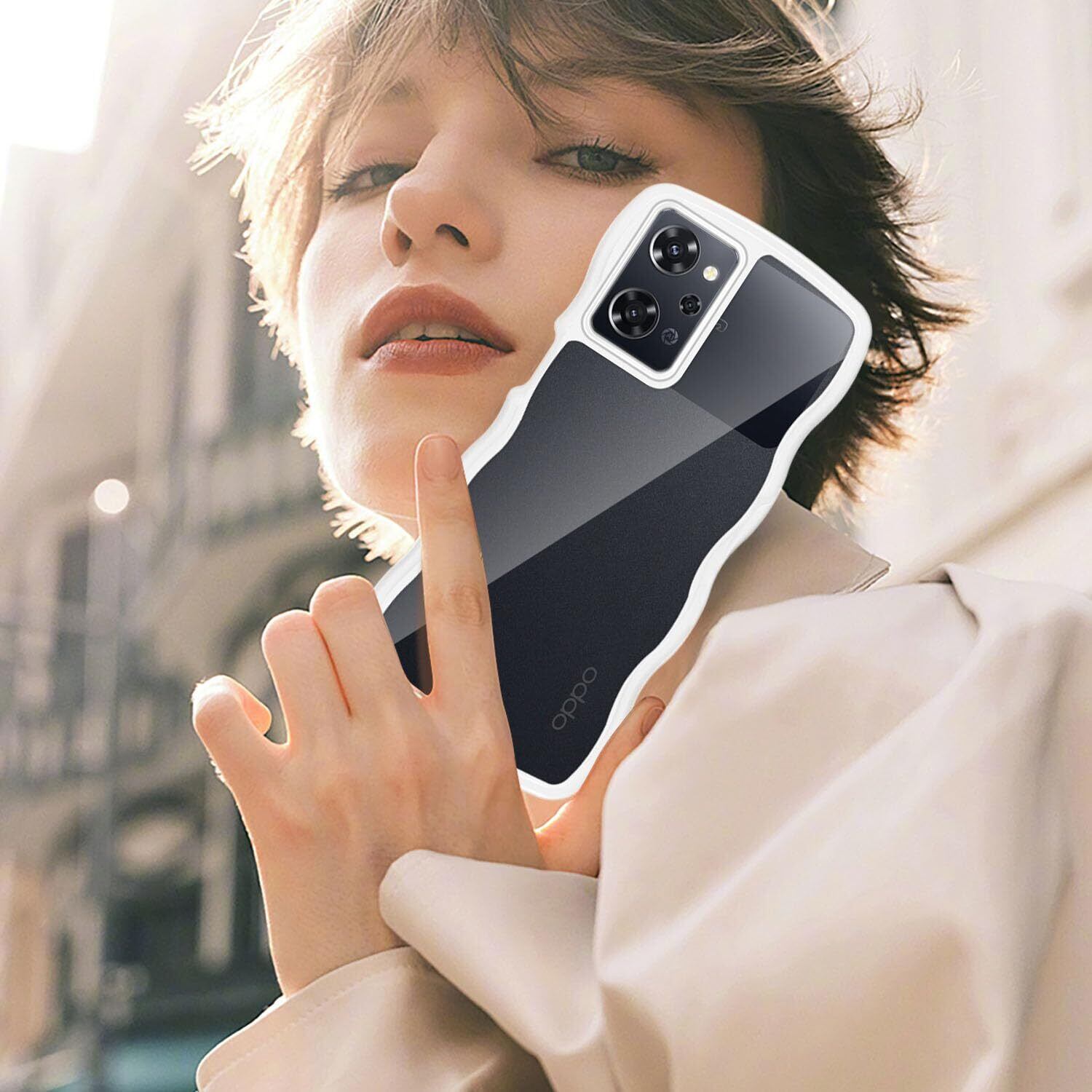 クリア OPPO Reno9 A/OPPO Reno7 A ケース かわいい 波状フレーム うねうね 耐衝撃 OPG04 スマホケース 滑り止め 人気 可愛い カバー 落下防止 ワイヤレス充電対応 (ホワイト)