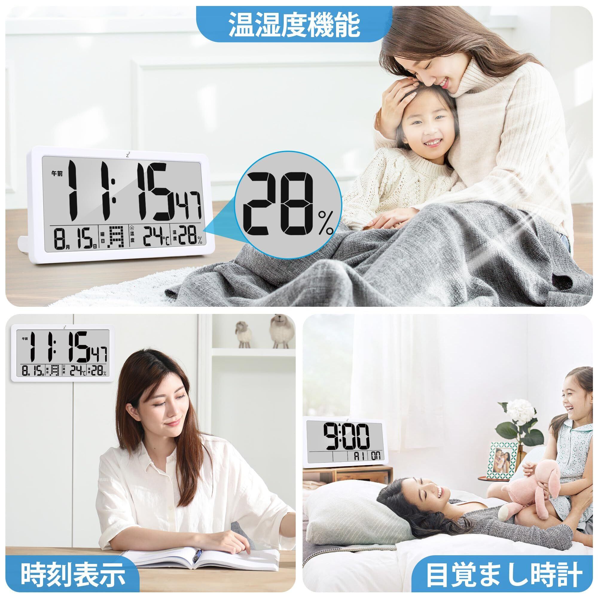 【大型液晶ディスプレイと 3 つの便利なモード】 全視角の大型液晶ディスプレイを採用し、デザイン面では目で見やすくなるようになっており、どの角度から見てもはっきりと読みやすいです。このデジタル時計にはタイマー、アラーム、時計の 3 つのモードが搭載されており、リモコン操作により簡単にモード切り替えができます。また、人体工学に基づいたデザインで、12 時間制や 24 時間制の表示切り替え、摂氏(℃)と華氏(℉)の切り替えも柔軟に対応でき、多様なニーズにお応えできます。