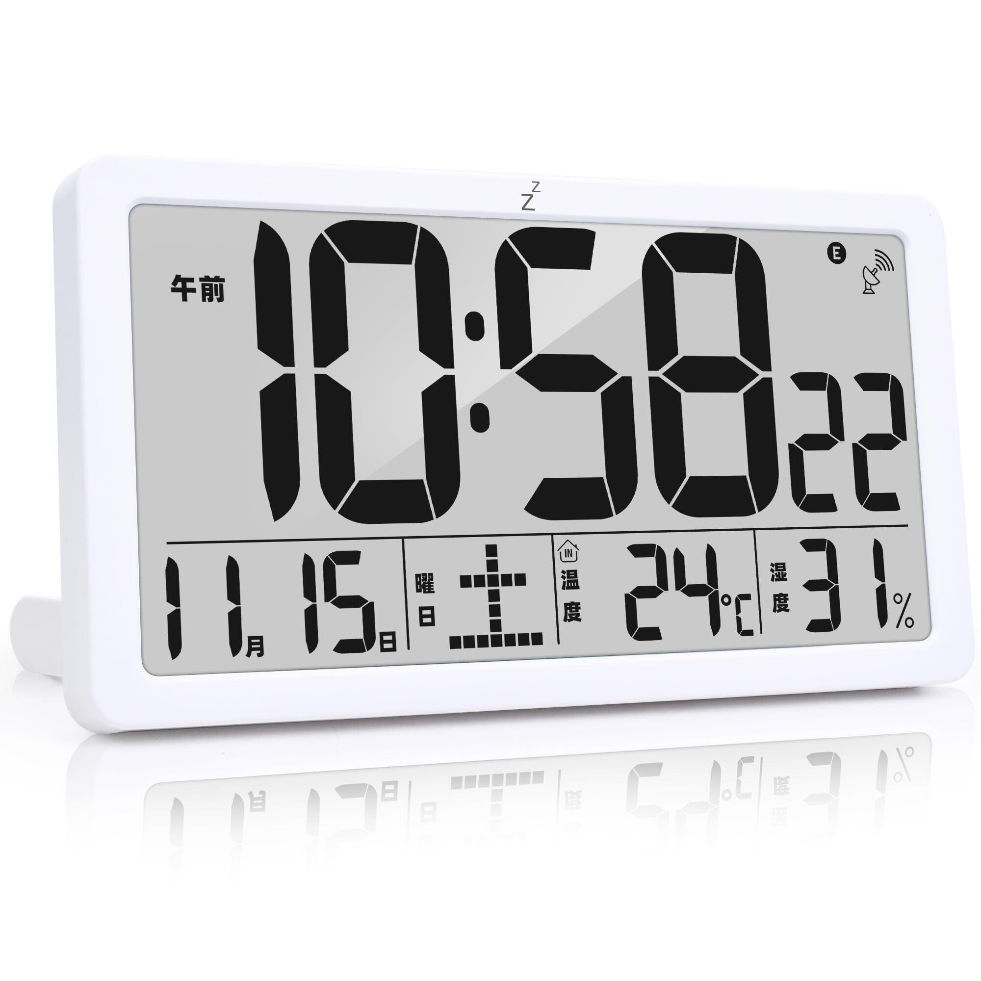 KMMKGG デジタル電波時計 LCD掛け時計 置き時計 クロック 老人向け: 自動時刻合わせ 温度表示(℃/℉) 日付・曜日表示 12H/24H表示 目覚まし時計 57 種類のチャイム 大音量 アラーム スヌーズ機能 メモリー機能 日本語説明書付き壁掛け・卓上兼用 24.7x13.7x3.2 cm (バックライト付かない) | BASE SHOP
