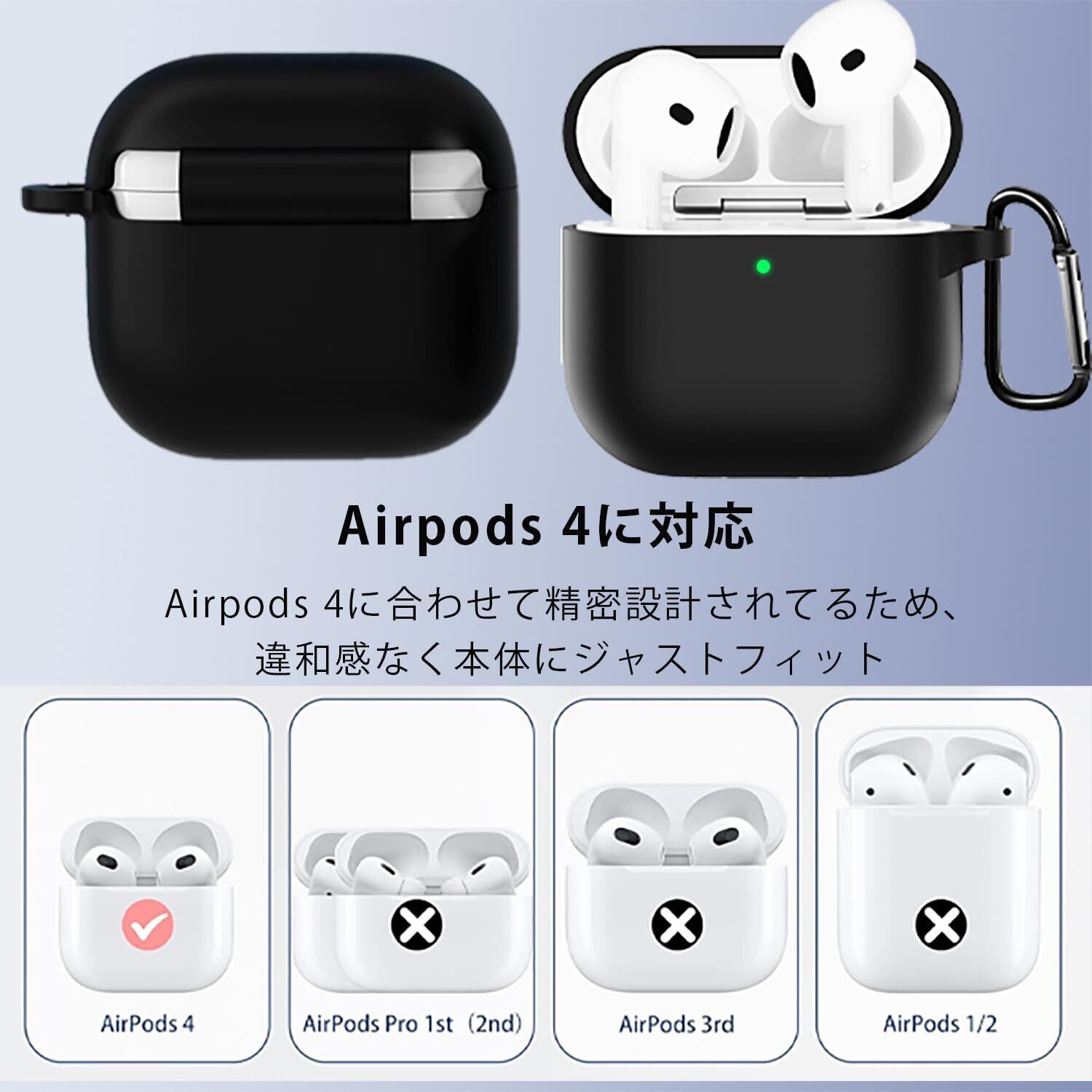 【対応機種】airpods4 に対応保護カバーです。(注意:①AirPods 第4世代本体、充電器、USBケーブルは含まれていません。)