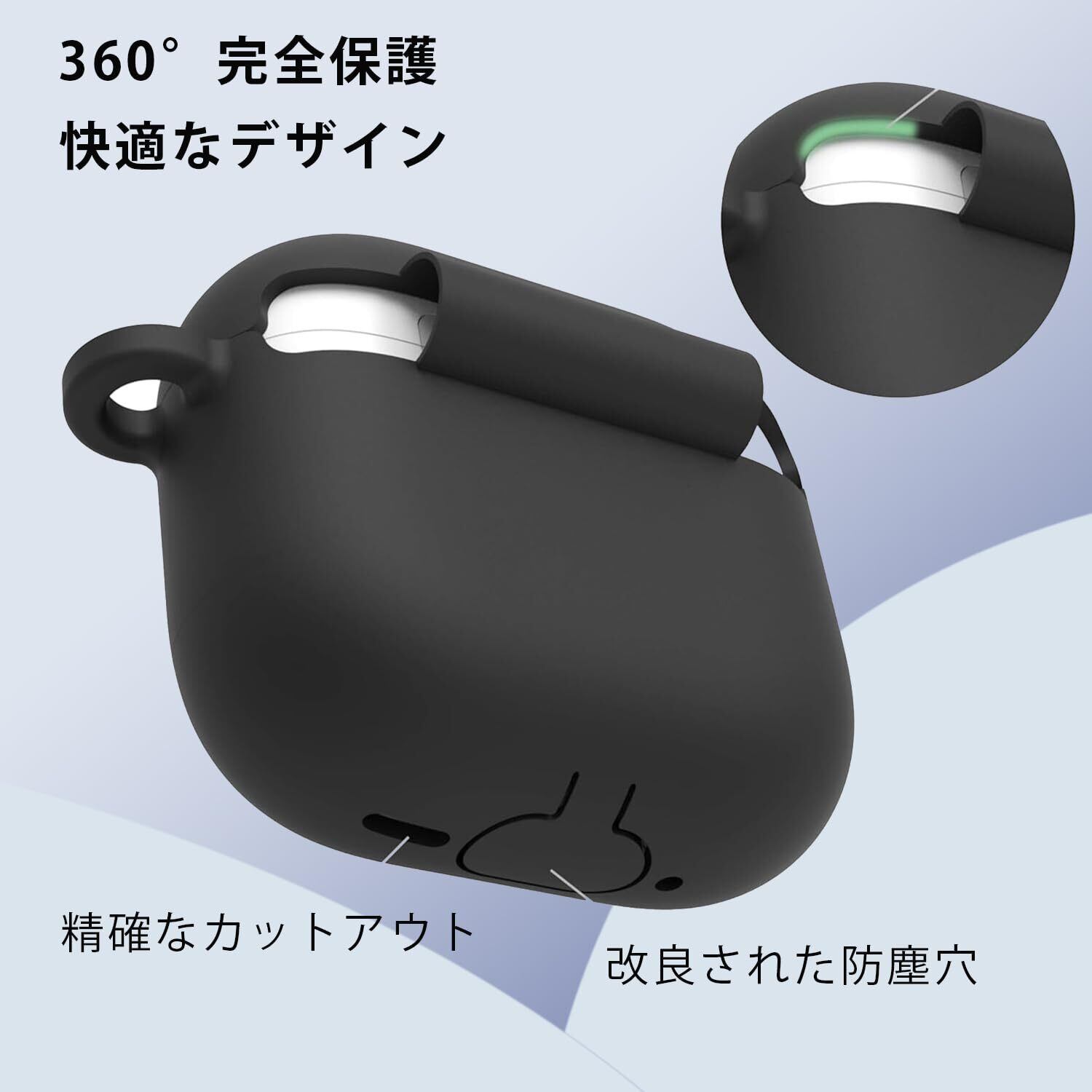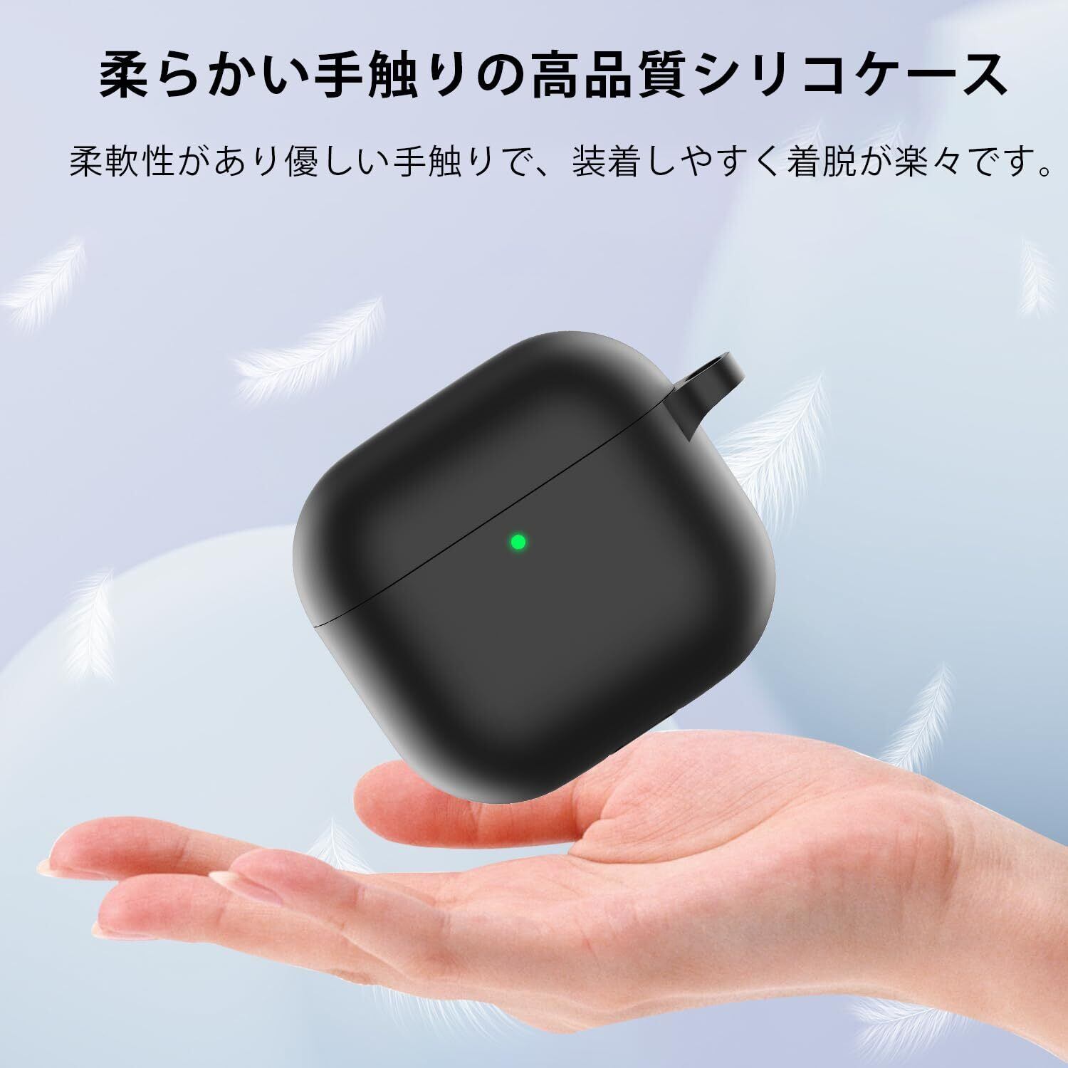 LAYJOY AirPods4 用 ケース AirPods 第4世代 カバー シリコーンケース AirPods 4 ケース保護カバー 装着充電可能 全面保護 落下防止 キズ防止 耐衝撃 防塵 防水 軽量 収納 カラビナ付き (ブラック) | BASE SHOP