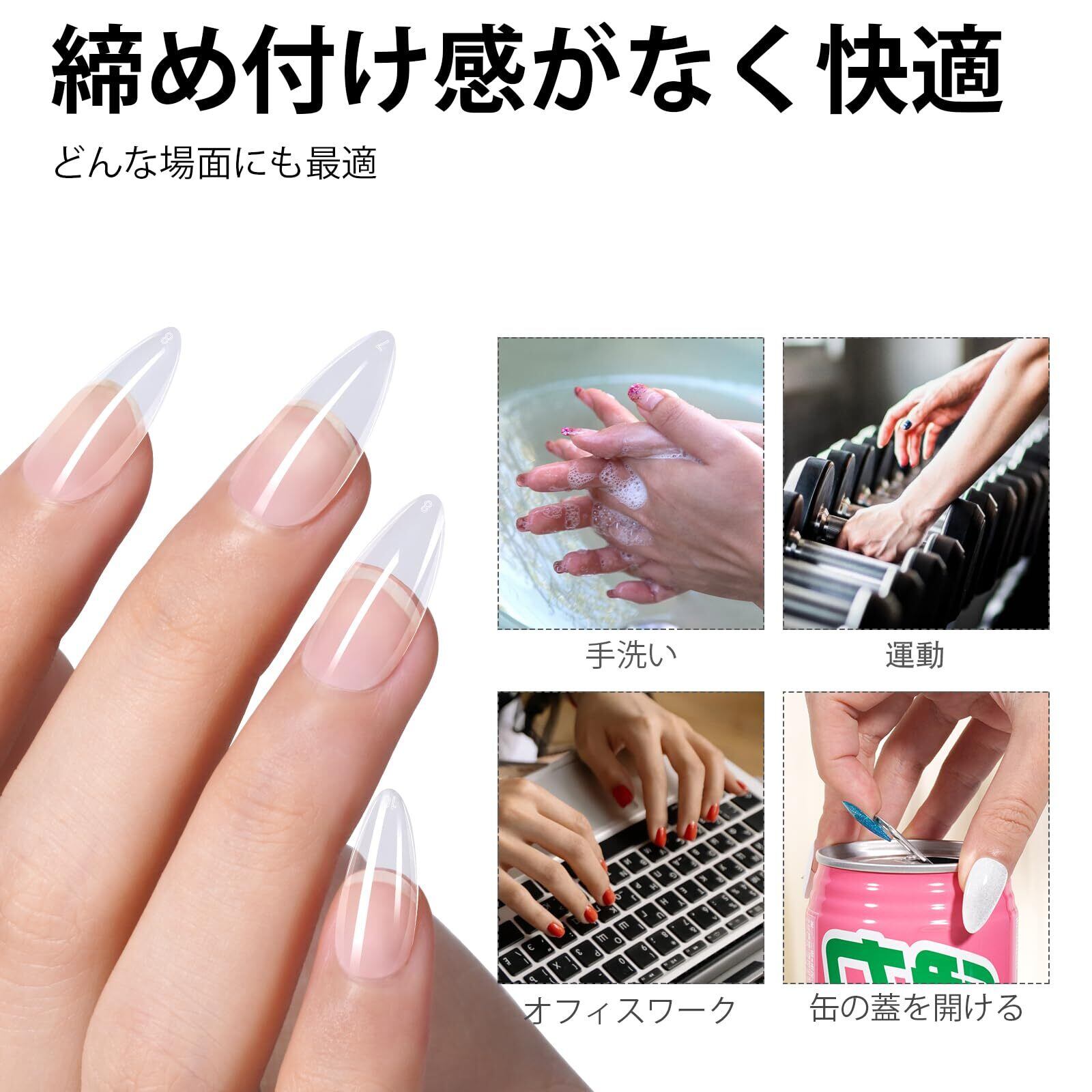 て肌に優しい: TOMICCA ネイルチップ接着剤は、革新的で環境に優しい成分で作られており、低臭、ビーガンおよび動物実験フリー、非毒性で爪と皮膚に無害です、耐久性があるだけでなく。
