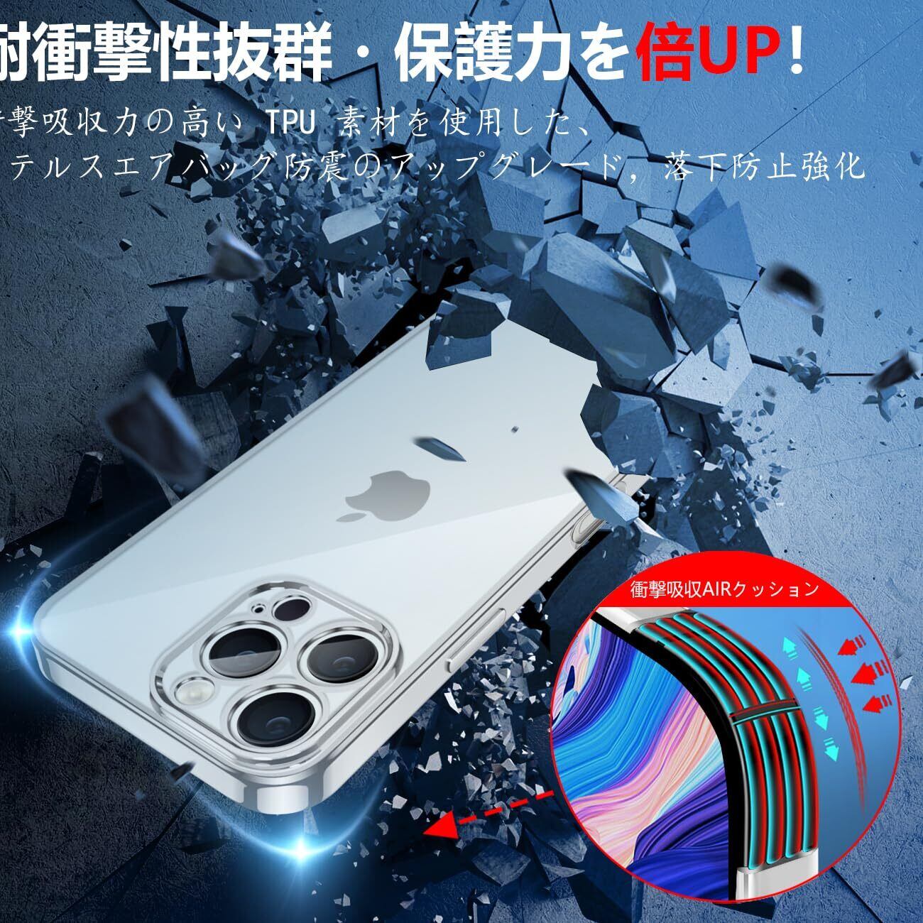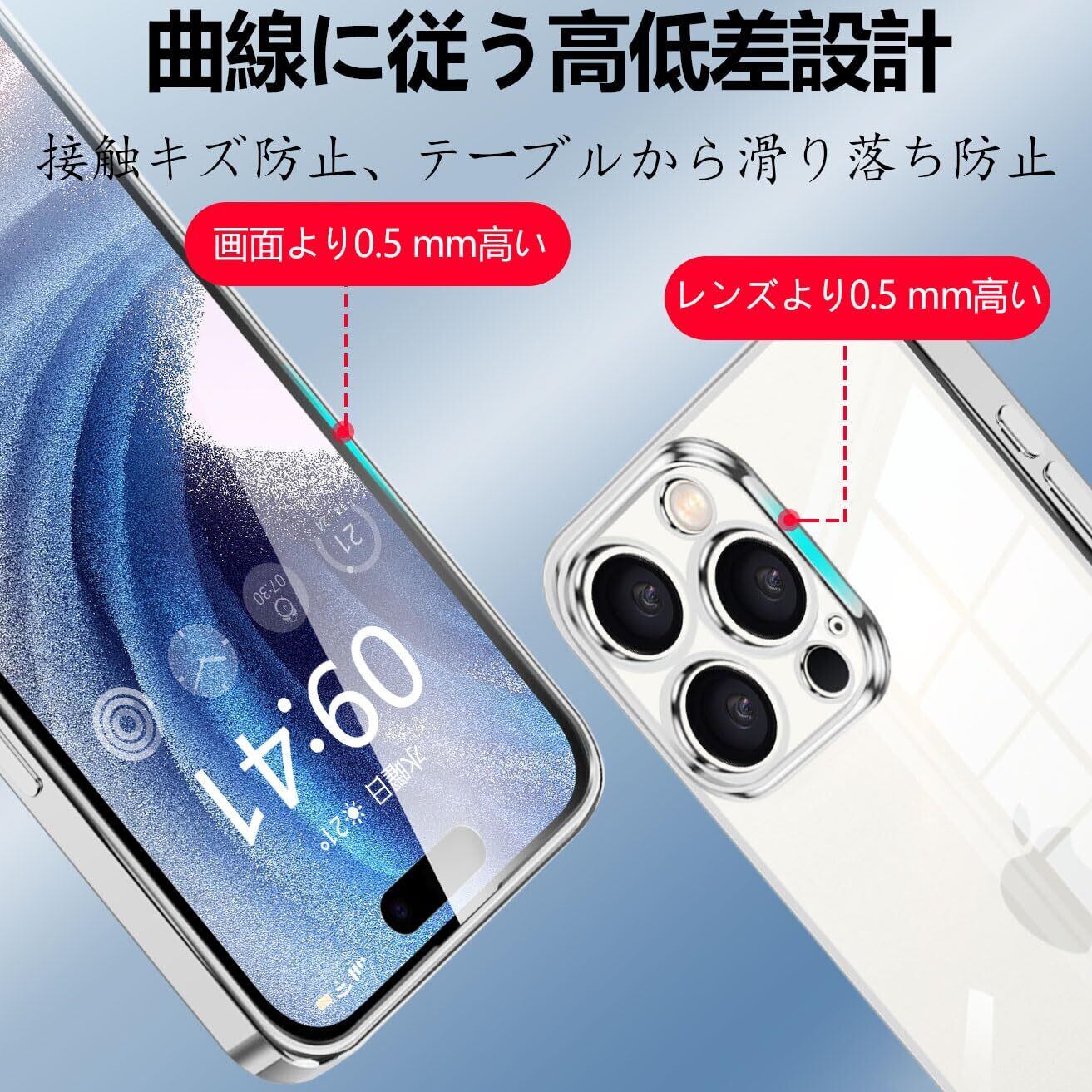 iPhone16 Pro Max 用 ケース クリア カメラ保護 いphone16 Pro Max スマホケース 薄型 TPU 軽量 変形防止 人気 スリム ソフト アイフォン 16 Pro Max カバー 衝撃吸収 ストラップホール付き(シルバー)