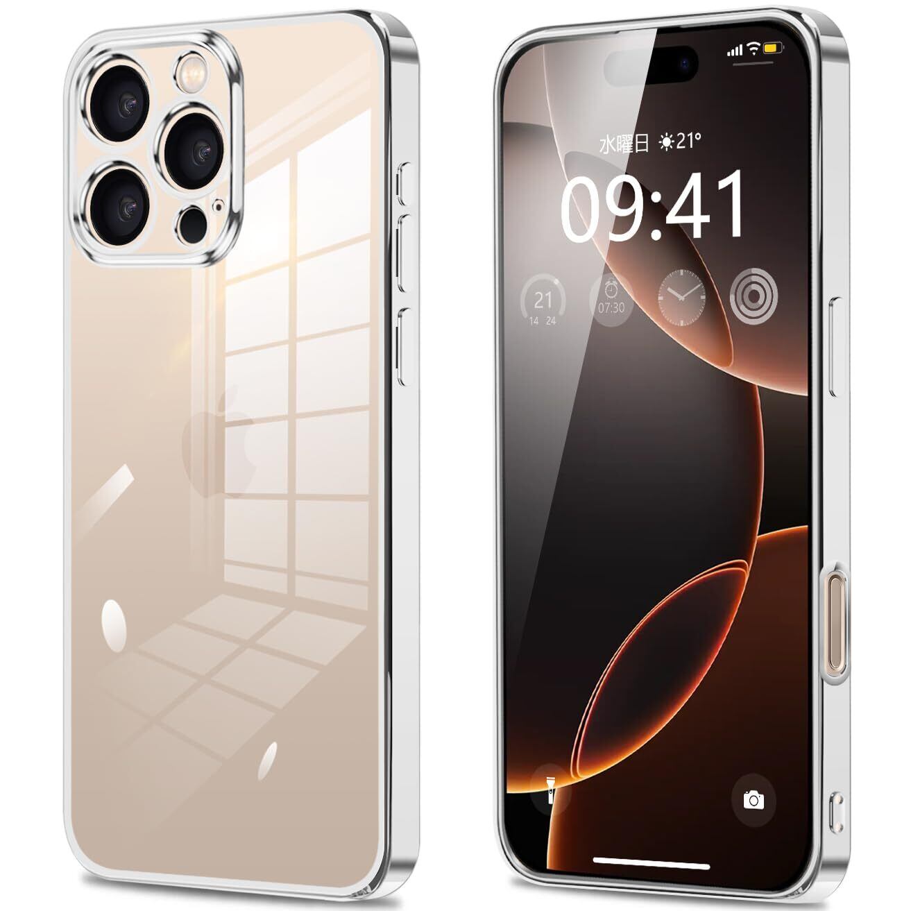 iPhone16 Pro Max 用 ケース クリア カメラ保護 いphone16 Pro Max スマホケース 薄型 TPU 軽量 変形防止 人気 スリム ソフト アイフォン 16 Pro Max カバー 衝撃吸収 ストラップホール付き(シルバー) | BASE SHOP