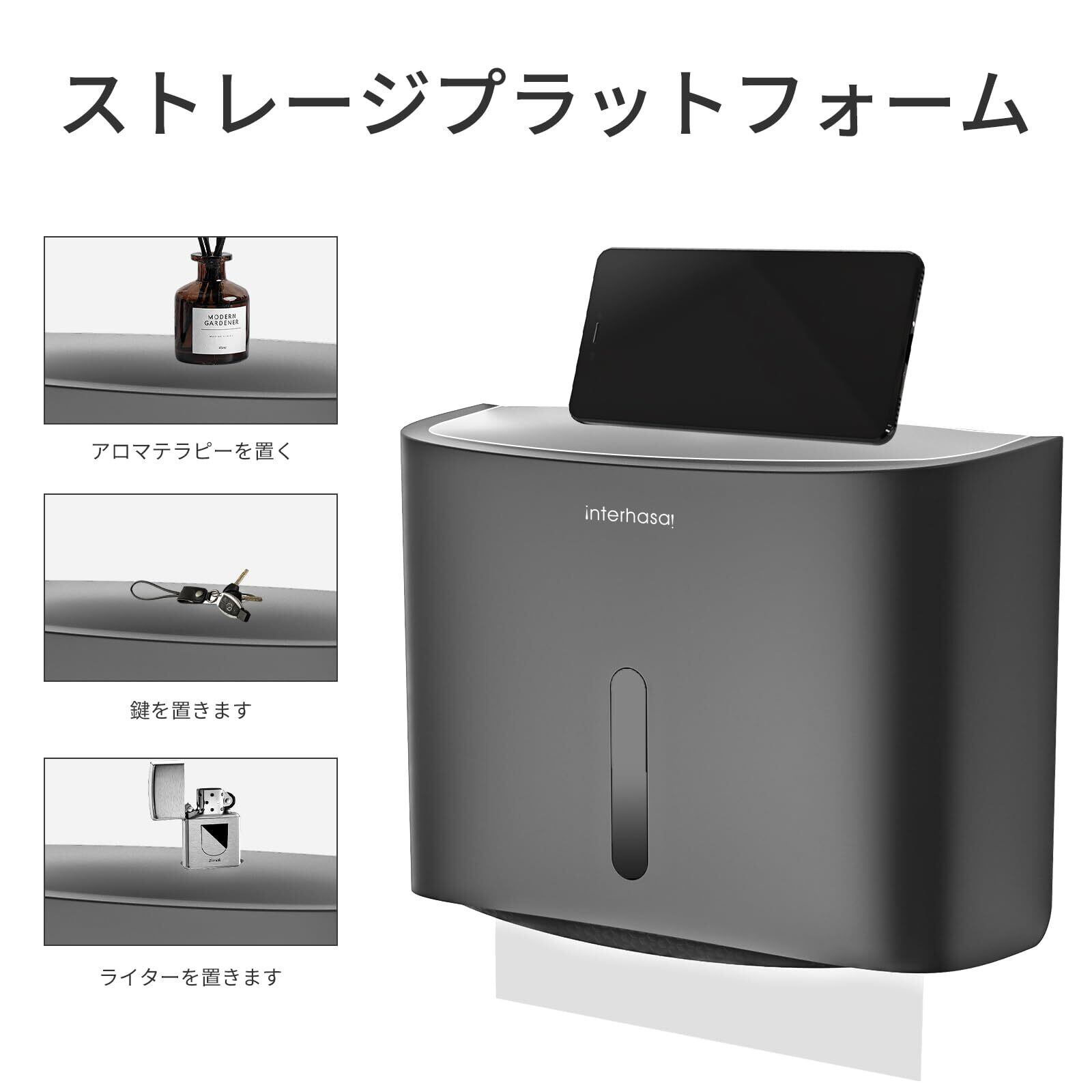 interhasa! ペーパーホルダー 壁掛け ペーパータオルホルダー 小判用 中判用 Z折りティッシュ ハンドペーパーホルダー 200枚大容量収納 家庭用/業務用防水 ハンドペーパーディスペンサー テープで簡単設置 ABS製 6015(ブラック) | BASE SHOP