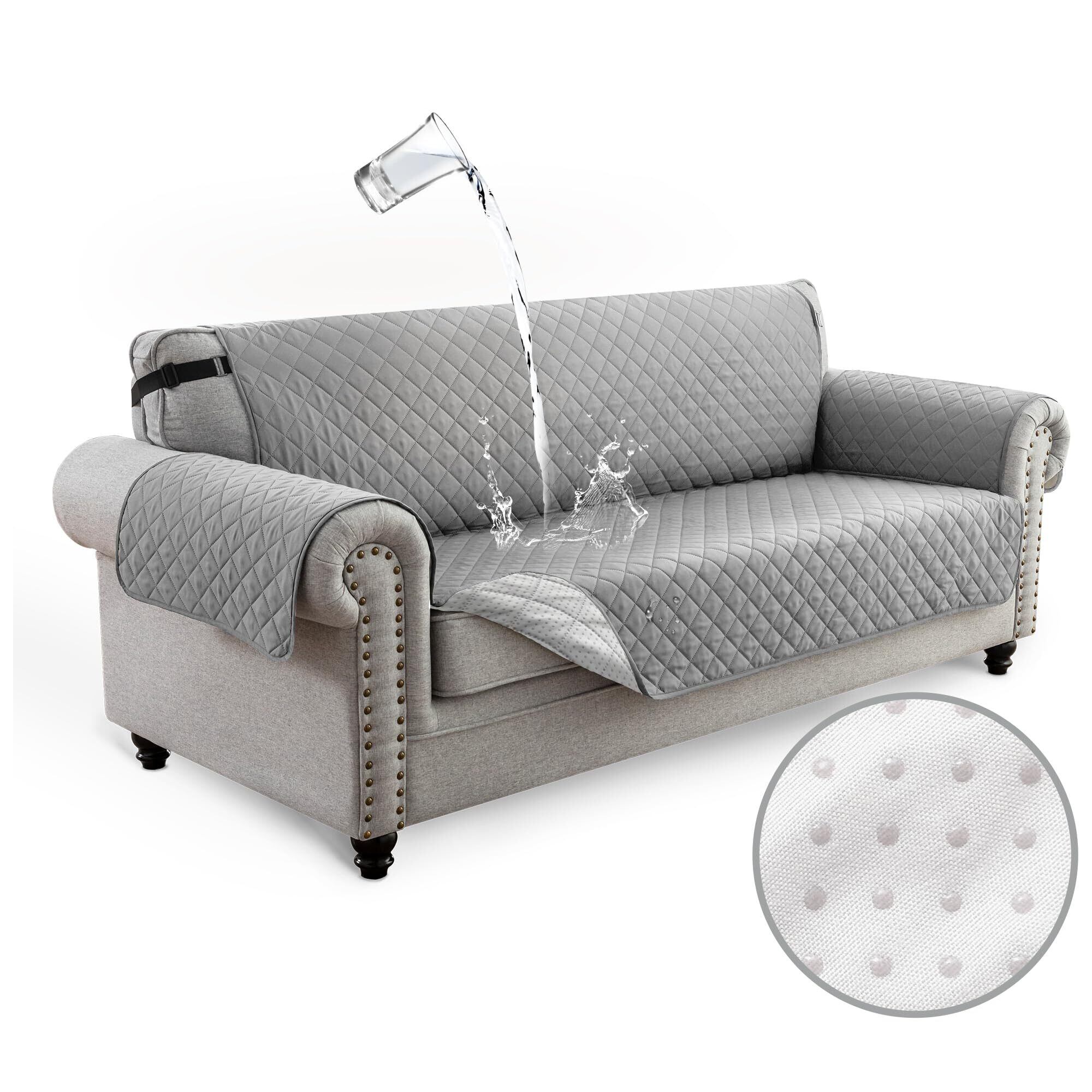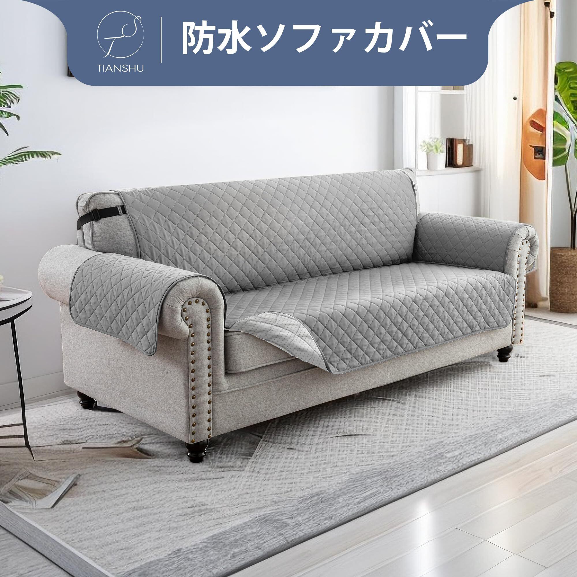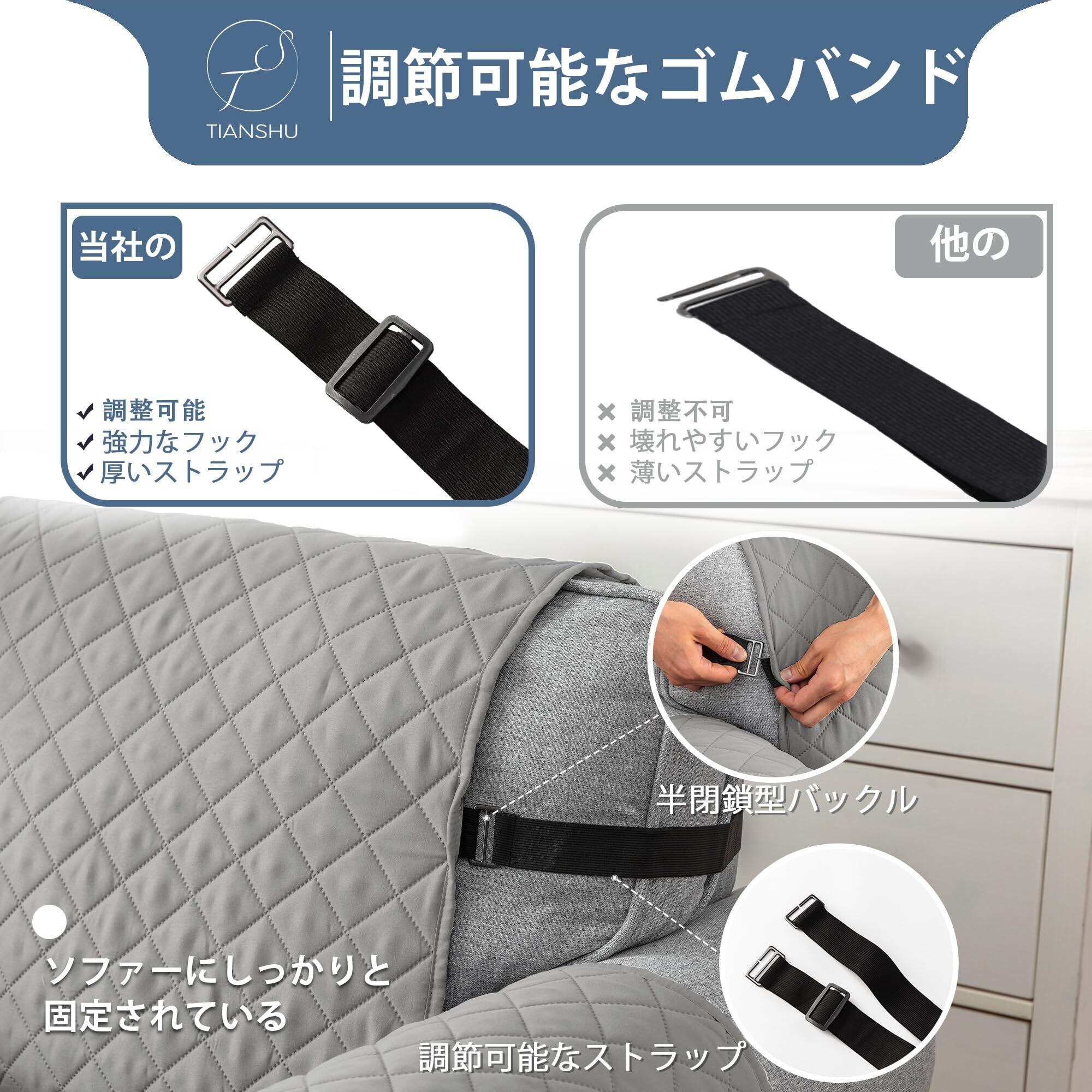 TIANSHU ソファーカバー 3人掛け 防水 マルチカバー 肘付き 犬猫対策 ソファーマット 滑り止め 撥水加工 ソファカバー 無地 シートカバー 傷防止 爪とぎ防止 防塵 汚れ防止 洗える 四季適用 (ライトグレー) | BASE SHOP