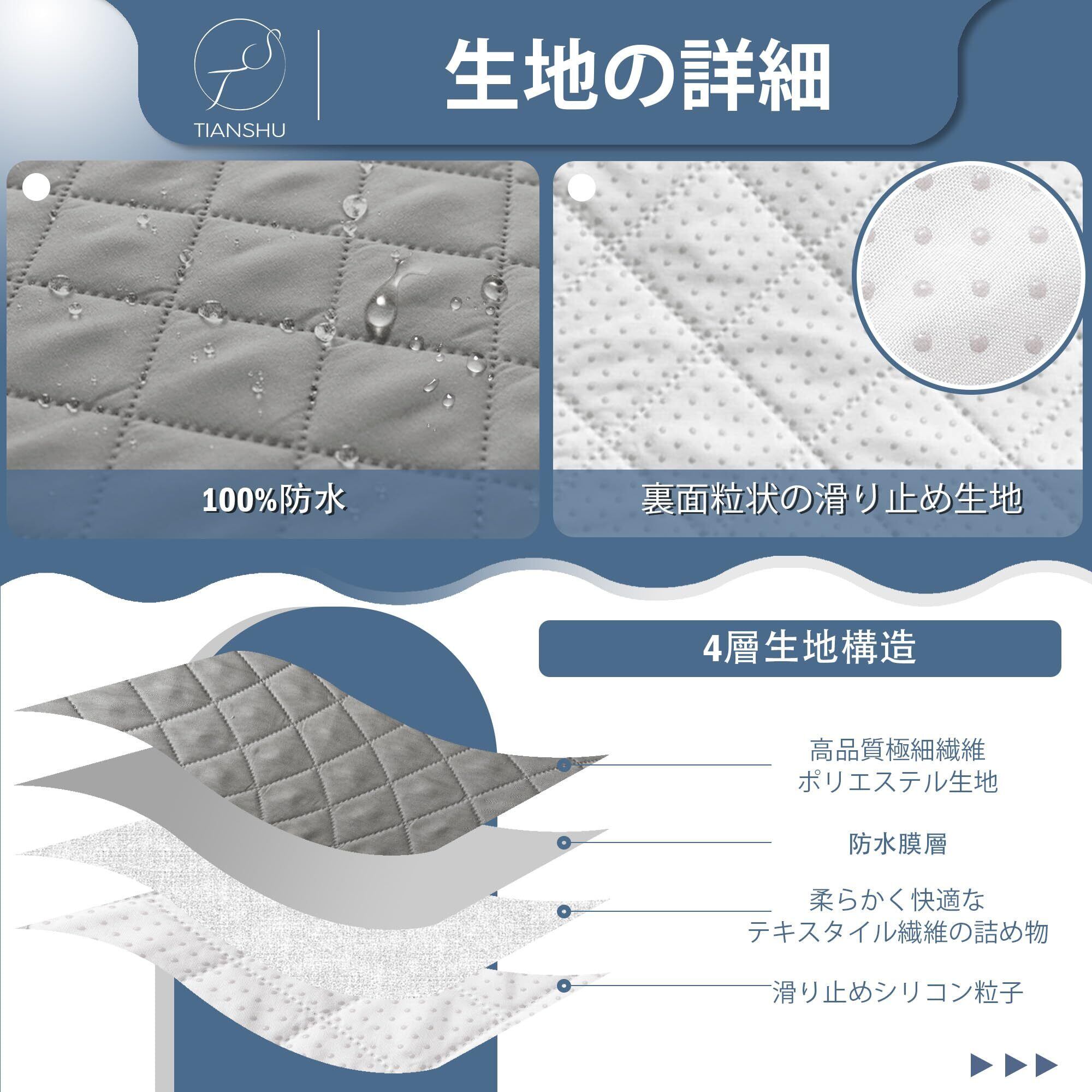 【防水】防水生地を使用しており、ある程度の水の侵入を防ぎます。誤って飲み物をこぼしたり、ペットがカバーの上にオシッコをしたりしても、すぐに液体が染み込みません。ソファカバーに液体をこぼした場合は、ペーパータオルや布で拭いてください。