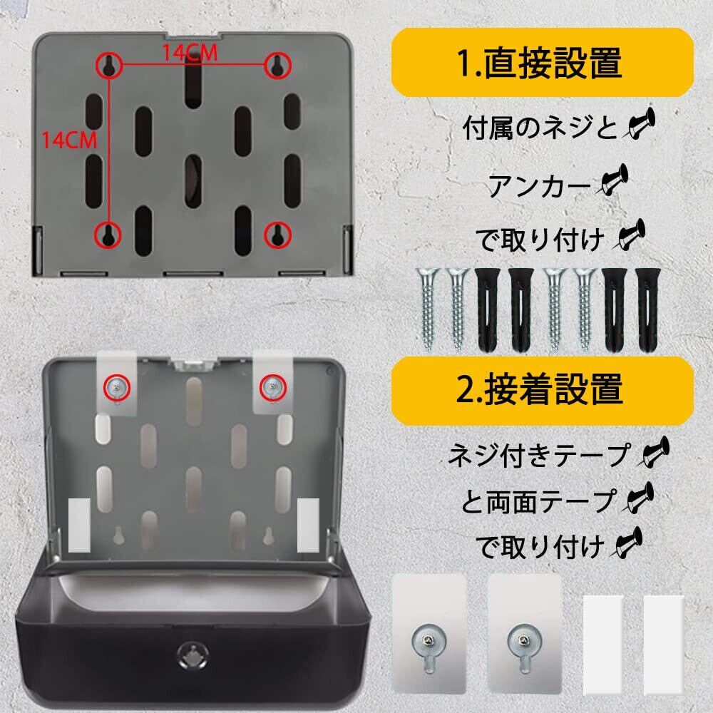 【壁掛け式で簡単に取り付け】両面テープまたはネジ固定の2つの取り付け方法から選べるため、使用場所に合わせて設置できます。省スペースの設計で壁面にスッキリと設置できます。