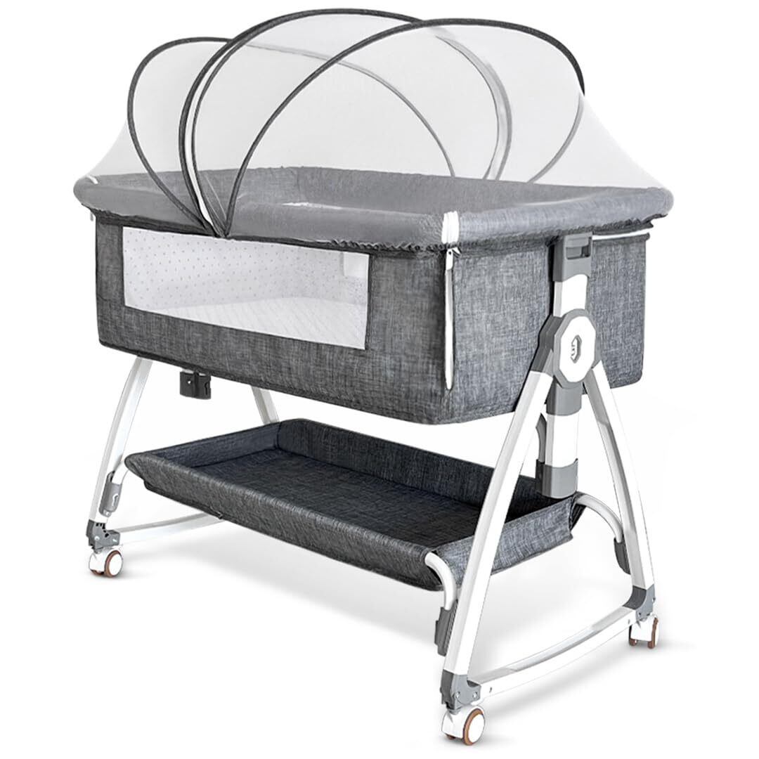 Oqhvup ベビーベッド 添い寝 乳児用ベッド 新生児ベッド 高さ6段調節可能 蚊帳 通気性 多機能 組み立て簡単 収納便利 持ち運び 洗濯可能 収納バスケット キャスタ付き 睡吐防止 軽量 幼児 新生児用 出産祝い プレゼント 0ヶ月 ~ 24ヶ月 (グレー) | BASE SHOP
