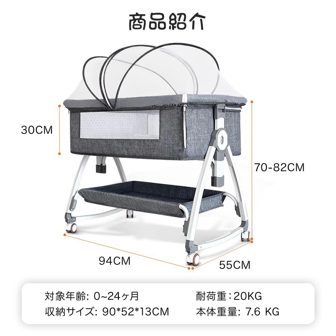 【高さ調節可能】高さ6段階調節可能で、市場に出回っているベッドタイプの99%と互換性があります。キャスターの安全ブレーキをロックする、お子様を快適な環境で眠らせてあげられます。ーベッドは斜めの調節可能で、新生児に対してミルクの吐くことを防ぐことができます。