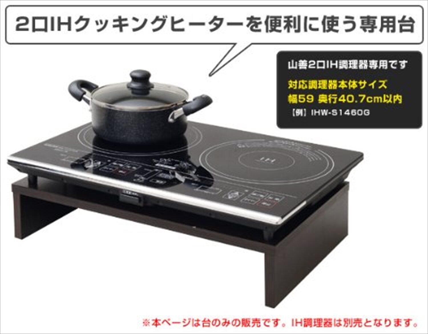 ●組立品です●組立時間:約10-20分●2口IHクッキングヒーターを便利に使う専用台●本ページは台のみの販売です。IH調理器は別売となります。●山善2口IH調理器専用です(対応調理器本体サイズ:幅59 奥行40.7cm以内 【例】IHW-S1460G)●天板下内寸:幅53 奥行34.5 高さ10cm※本品は『台』のみの販売ページです。IH調理器自体は含まれておりません。