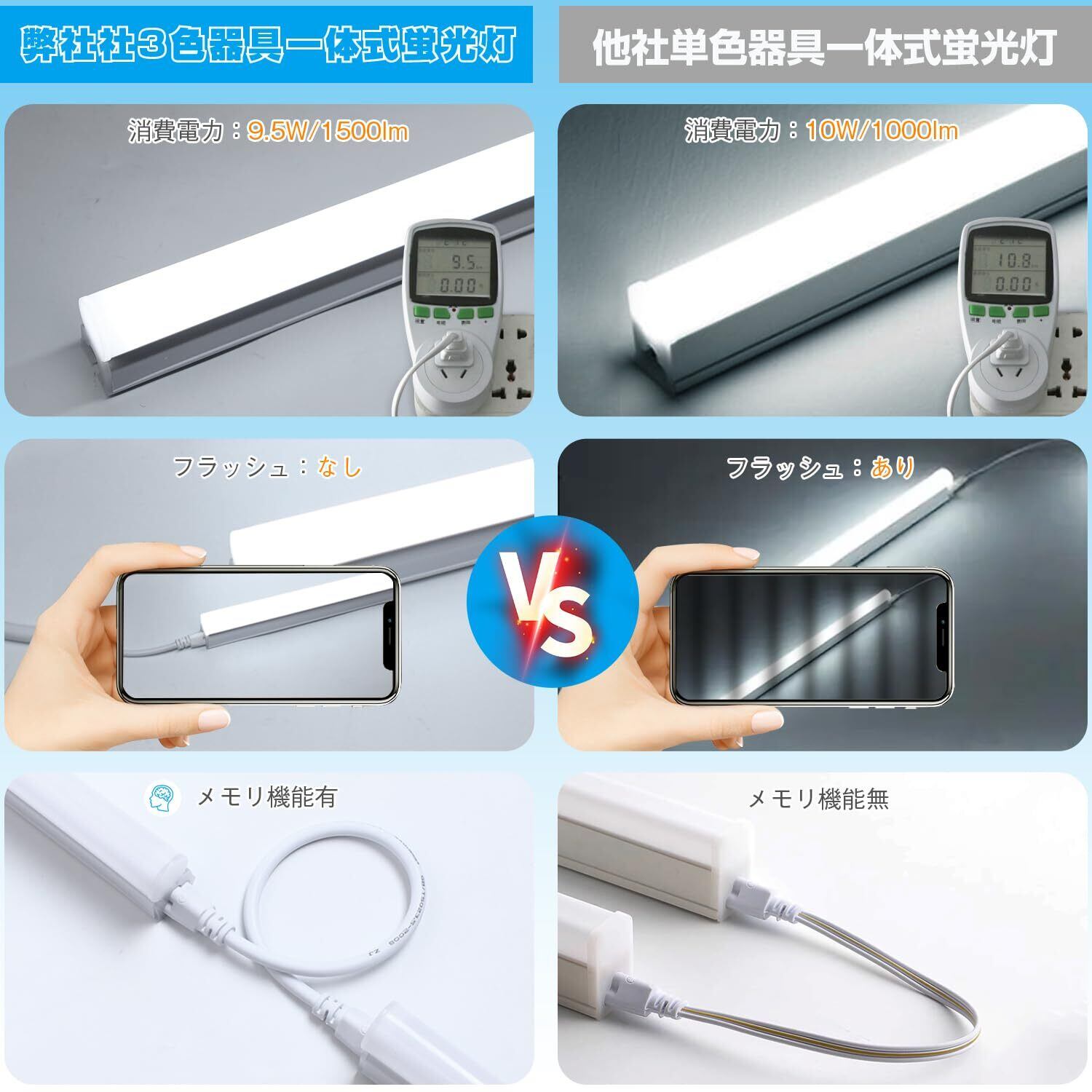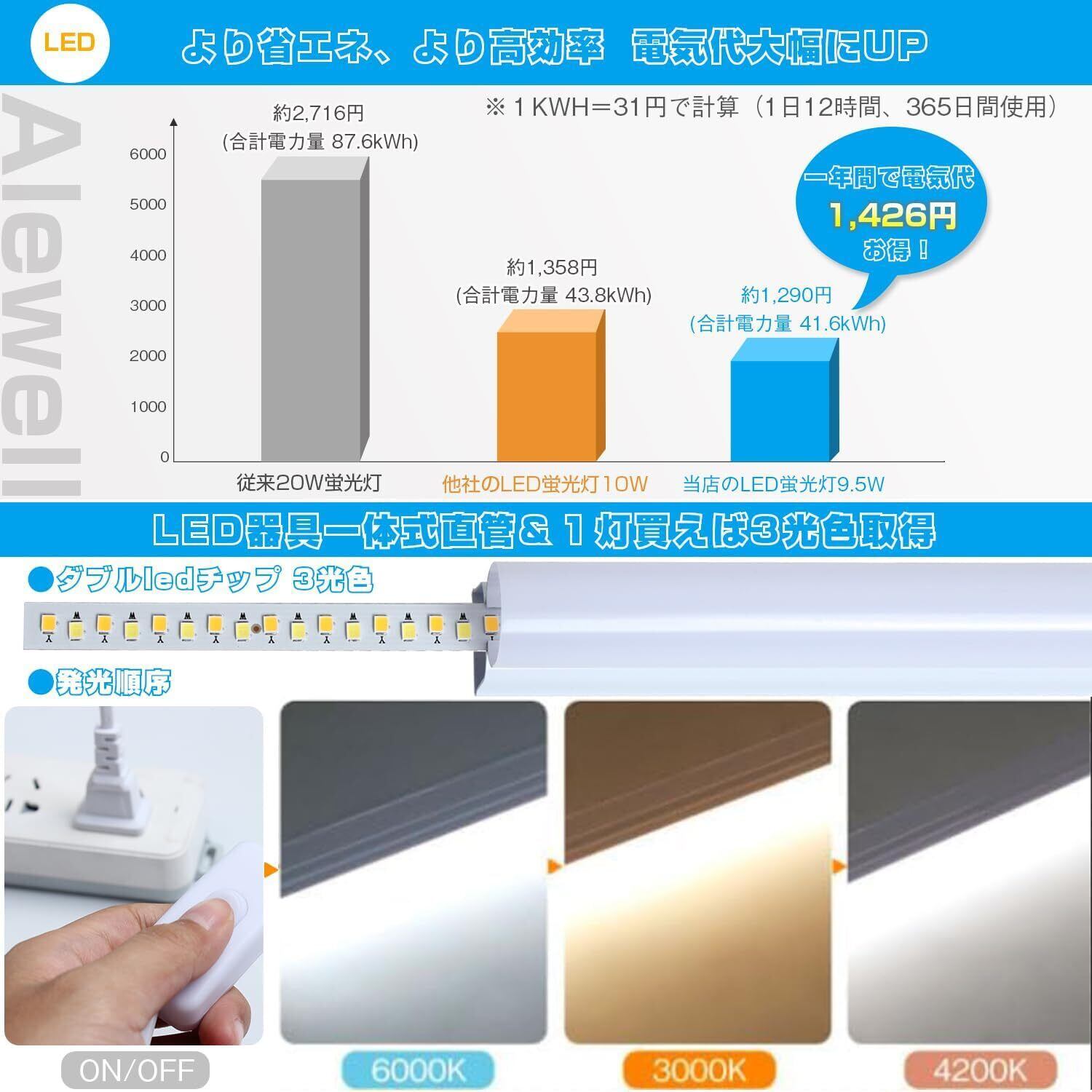 【Alewell自己開発&メモリ機能付き】 器具一体型 led蛍光灯 一灯3色 20w形 直管ランプ 57㎝ 9.5w 1500lm 節電 T5直管 低発熱 ノイズなし フリッカーレス 長寿命 PSE済 1本