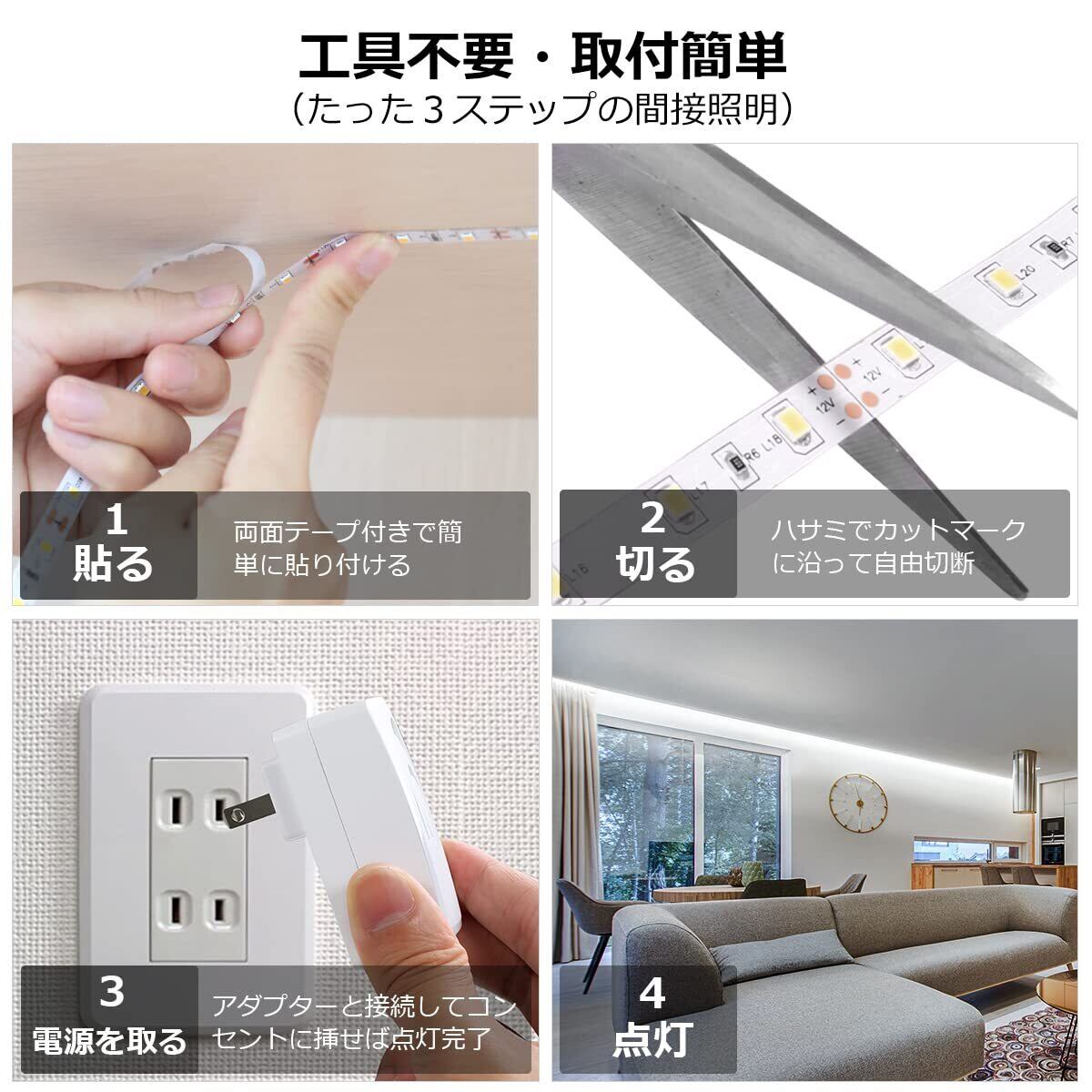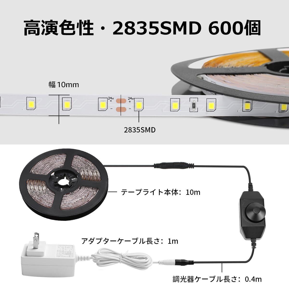 Lepro テープライト ledテープ 10m 昼光色 6000k 無段階調光 ストリップライト 薄型 両面テープ 切断可能 SMD2835 600LED高輝度 正面発光 間接照明 24W 非防水 室内・店内装飾 ledライト | BASE SHOP