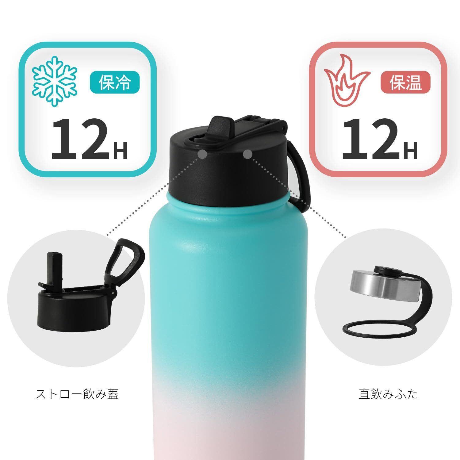 BOTTLE BOTTLE 1リットル 水筒 1L ステンレス ウォーターボトル 子供 直飲み ストロー付き 保温保冷 二重構造 真空断熱 持ち運び アウトドア 女の子 ブルー&ピンク