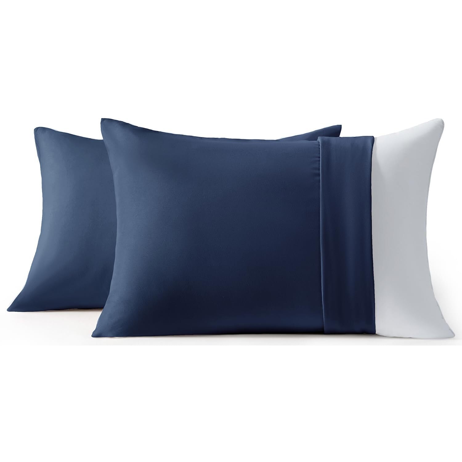 AZRA 枕カバー 2枚セット 43 63 ピーチスキン加工 ファスナー式 チャック付き おしゃれ オールシーズン ピローケース 通気 速乾 ネイビー