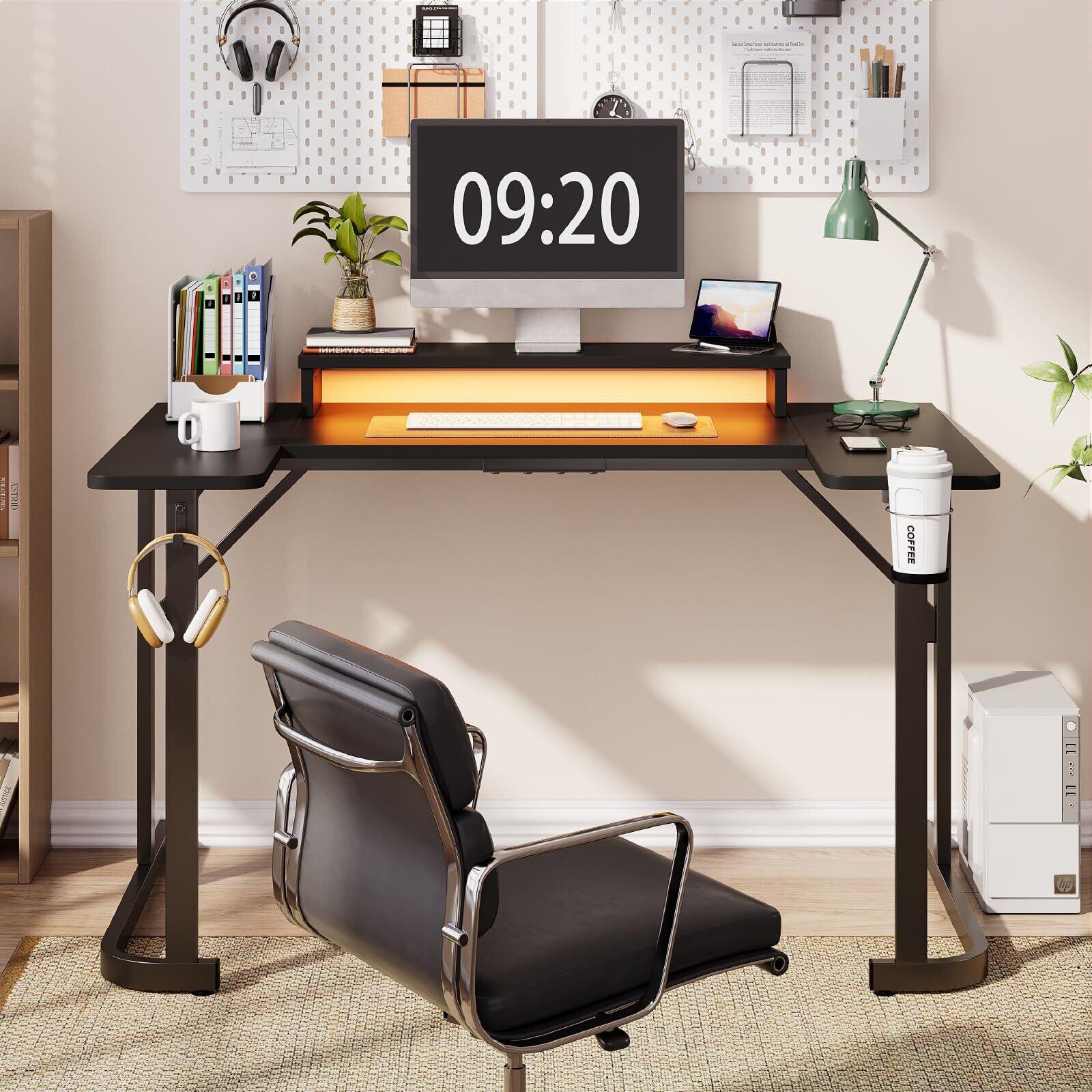 Bestier ゲーミングデスク 幅130cm×奥行80cm ゲーミングテーブル LEDライト付き 頑丈なフレーム 安定 耐荷重100KG U型 パソコンデスク 机 pcデスク モニター台付き プロゲーマー向け ブラック | BASE SHOP