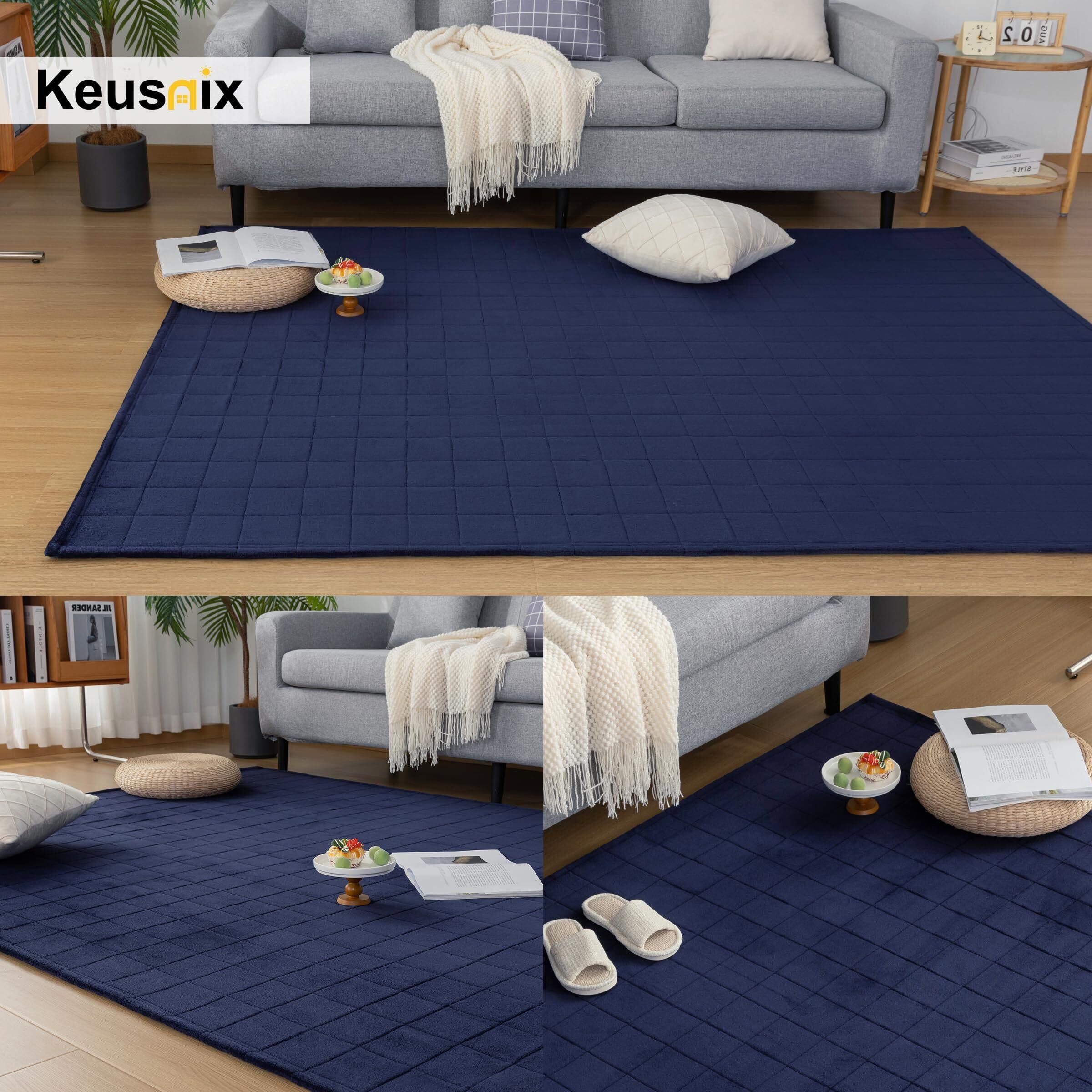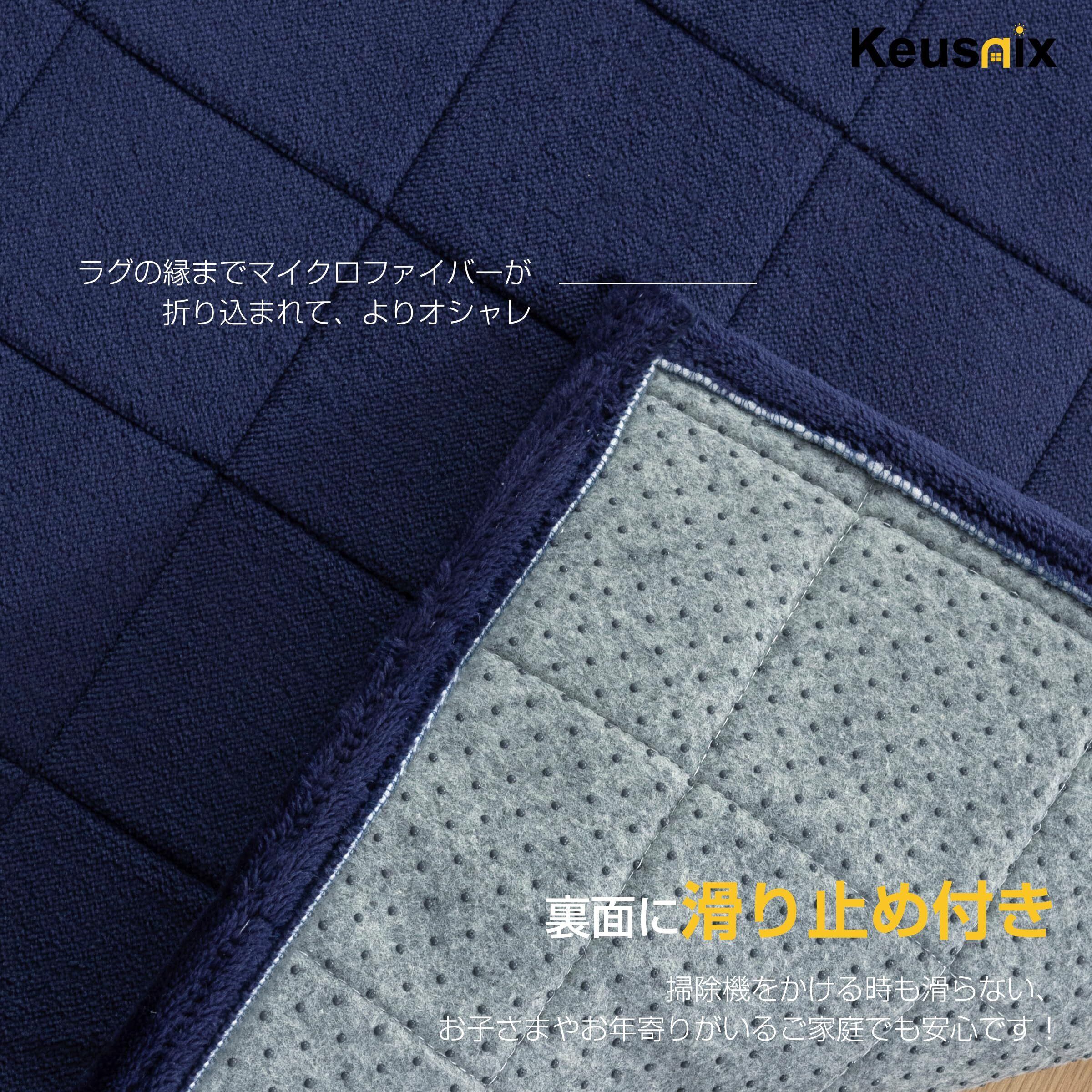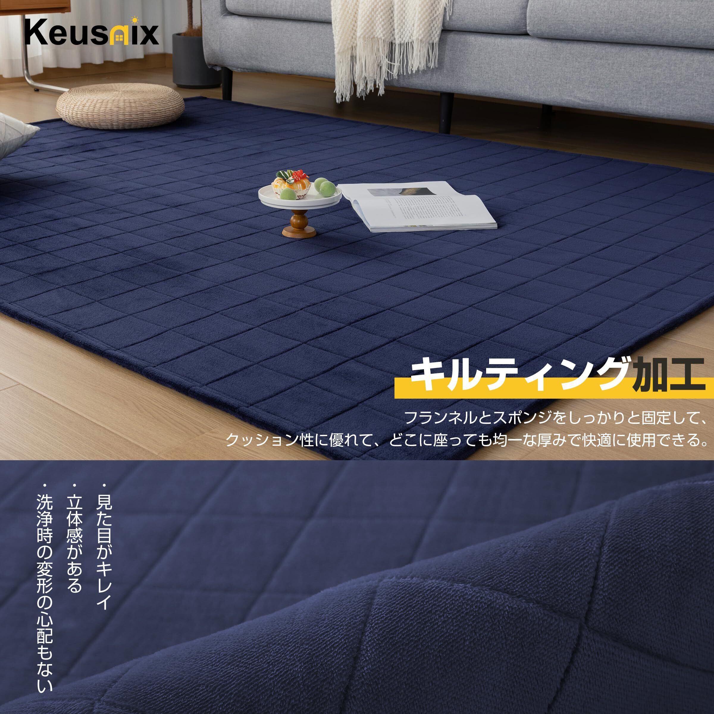 Keusnix ラグ カーペット キルトラグ 滑り止め付き 洗える ラグマット 135×185cm 約1.5畳 絨毯 オールシーズン 抗菌防臭 ふわふわ肌触り フランネルラグ 床暖房 ホットカーペット対応 無地 ネイビー | BASE SHOP