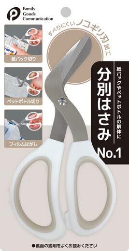紙パックやペットボトルの解体に便利な分別はさみです。