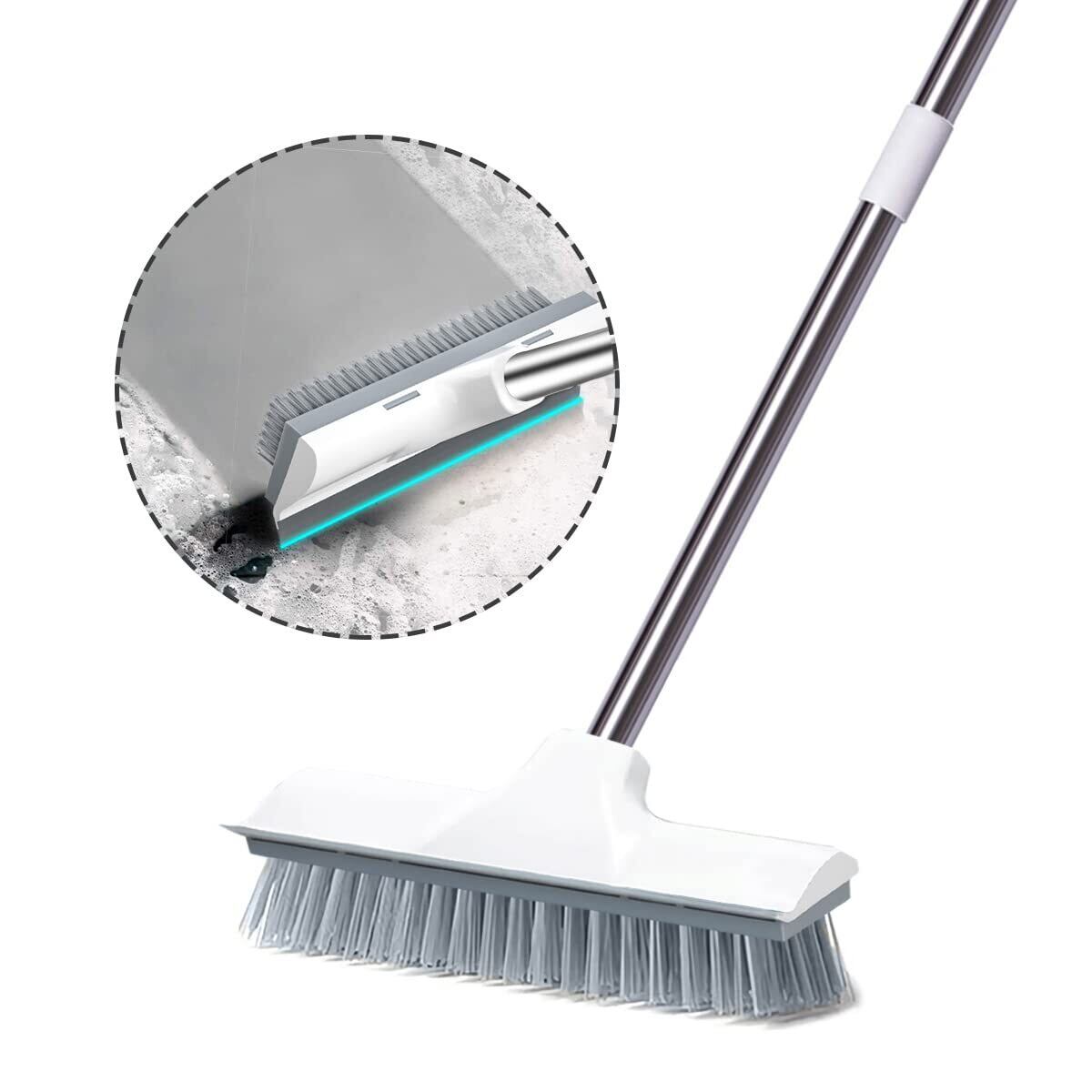 デッキブラシ 2 in 1 水切りワイパー ベランダ掃除用ブラシ ウォータースクレーパー 3段長さ調節可能 タイルブラシ 屋外 玄関 プールといっ掃除用品 風呂掃除