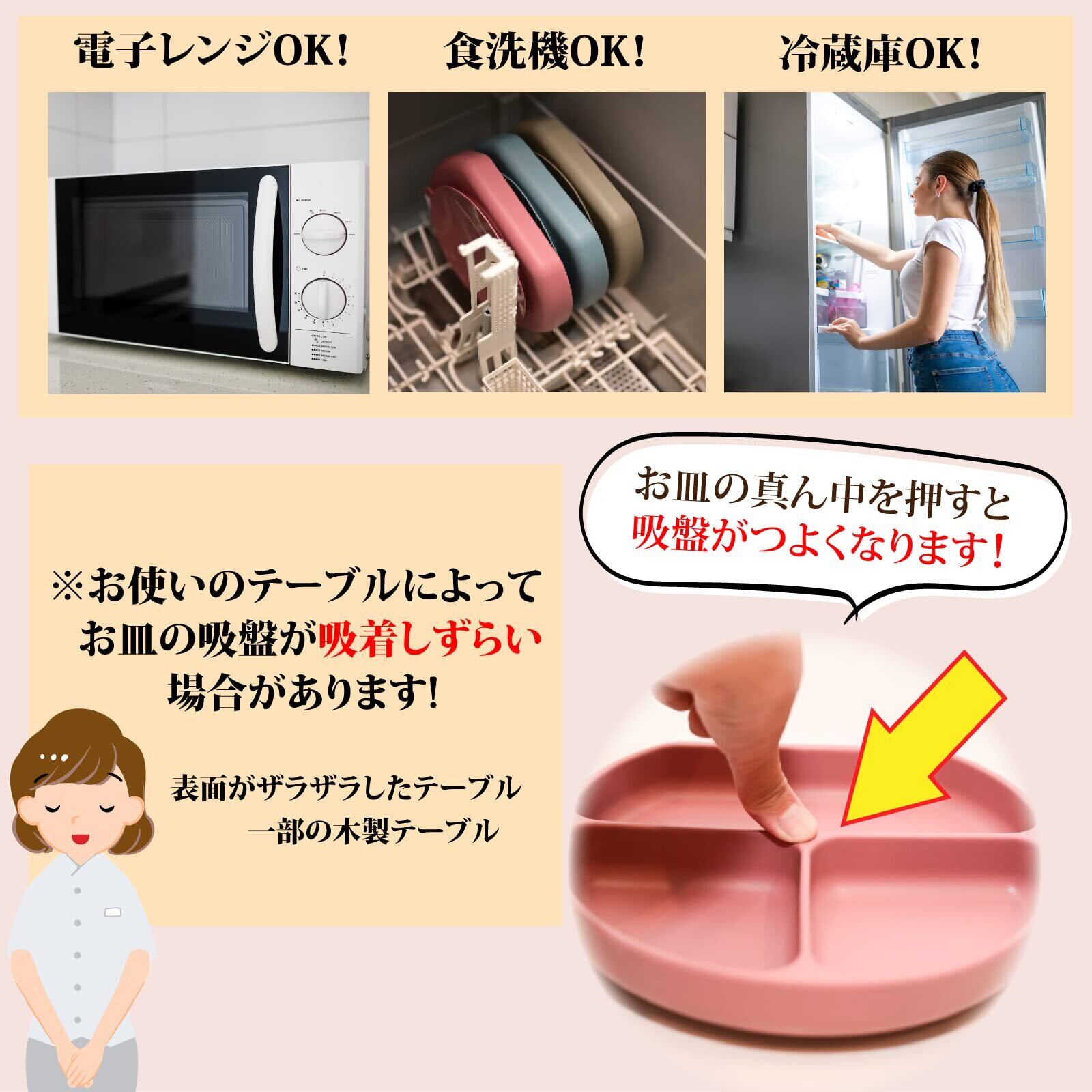 rinaty ベビー食器 ひっくり返らない 吸盤 プレート シリコン かわいいくすみカラー 食洗機 電子レンジ