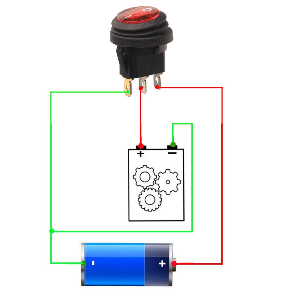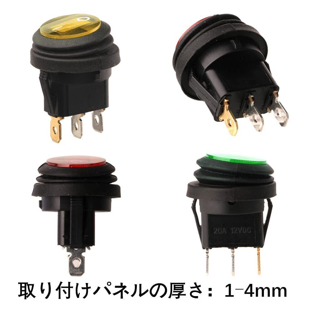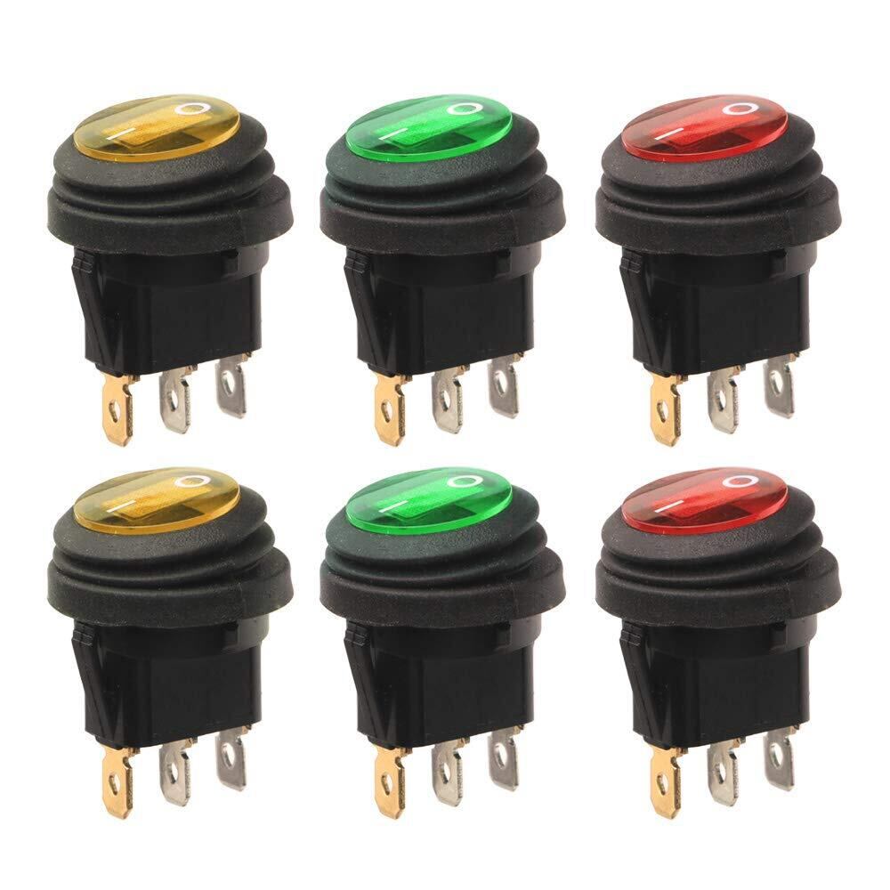Kiligen 6個 12V-24VDC / 20A防水丸型ロッカートグルスイッチ、LEDインジケータ付き、3ピンSPST ON-OFF三角プラグスイッチトラック用オートバイボートマリン(赤黄緑) | BASE SHOP