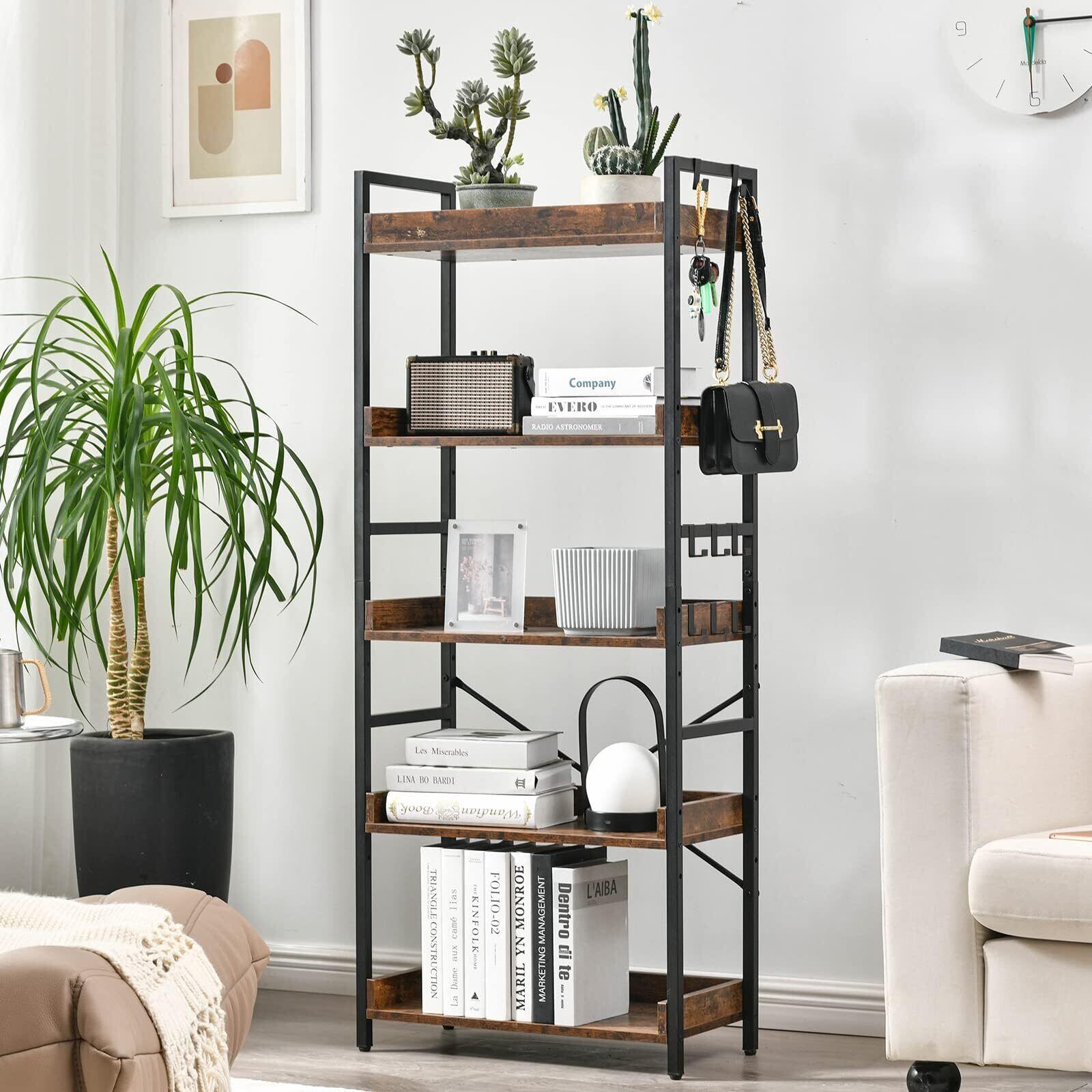 HCHQHS ラック キッチン 棚 おしゃれ 収納 オープンシェルフ 本棚 幅60 5段 ディスプレイ 木製 食器棚 スリム アイアン ウッド リビング 収納 レンジ 木目 組立簡単