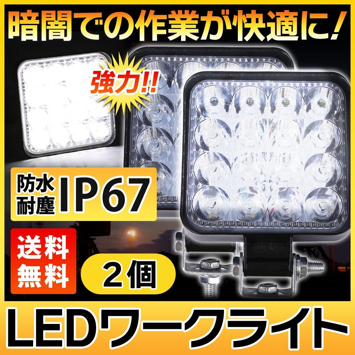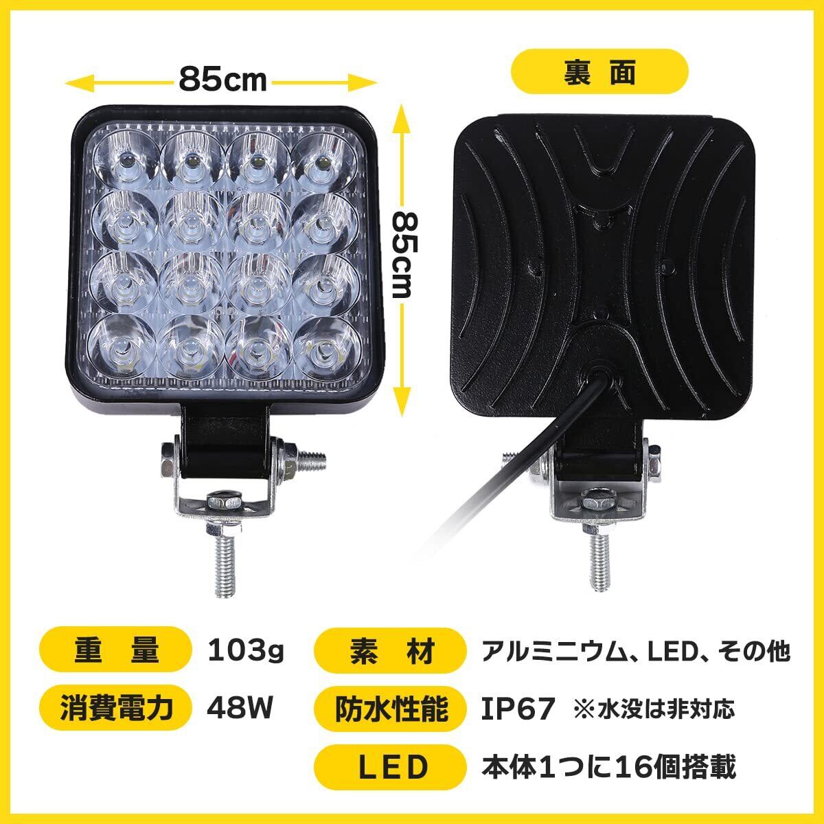 LED ワークライト 12V/24V 兼用 48W 6000K ホワイト 防水 作業灯 デッキライト 投光器 車幅灯 照明 トラック (2)