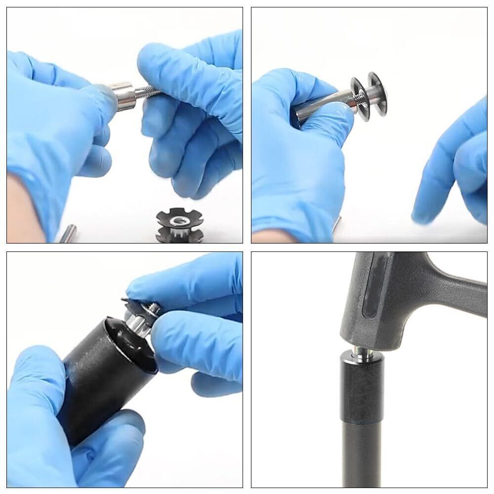 簡単な使用方法: 自転車ステムヘッドセットアウタースリーブをステアリングチューブにスライドさせ、スターナットを落とし、位置合わせピン部分でフォークチューブと位置を合わせ、ゴムハンマーで軽く叩くだけで完了です。