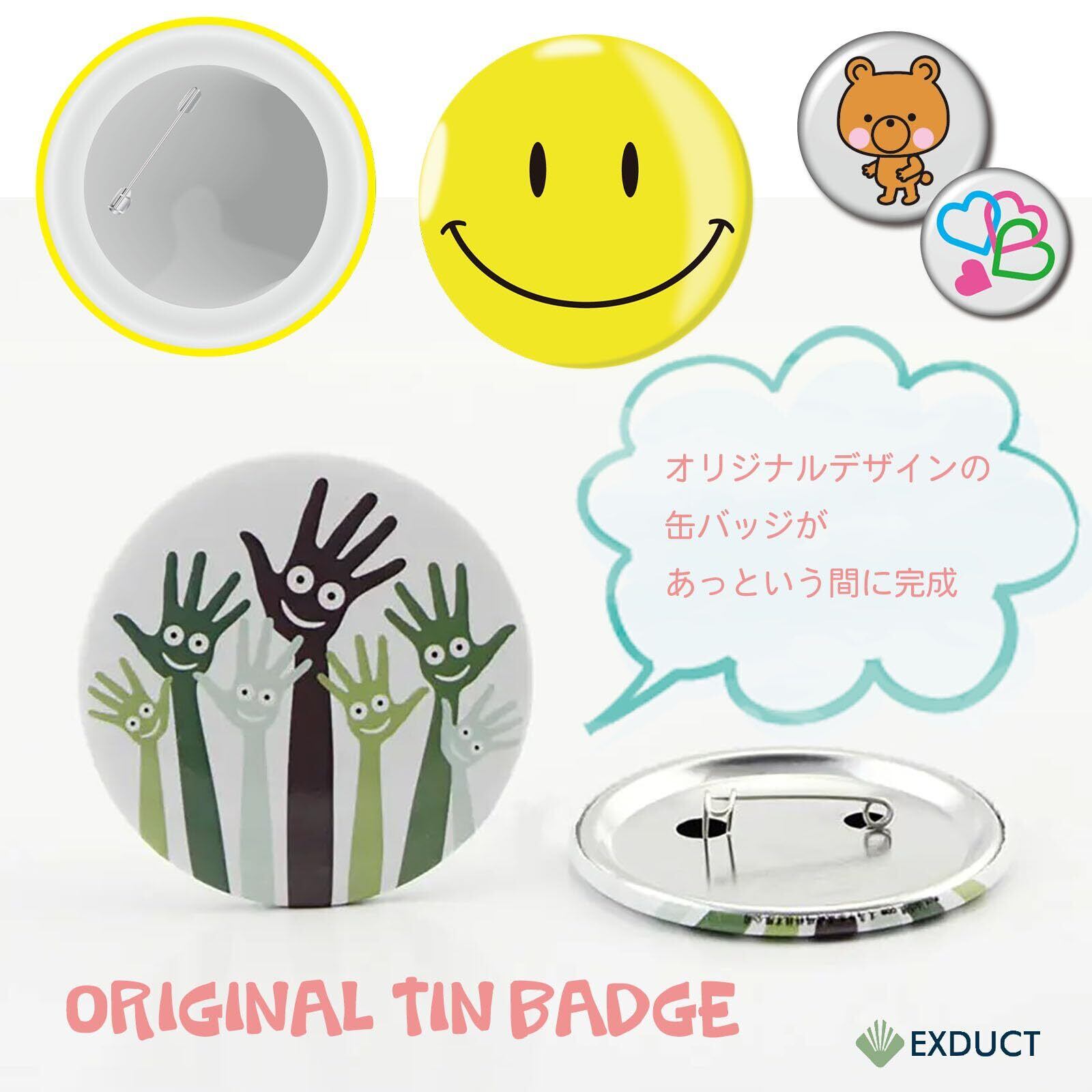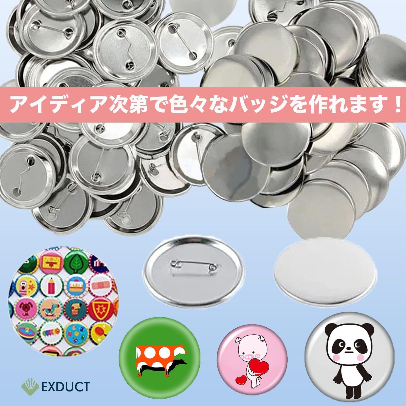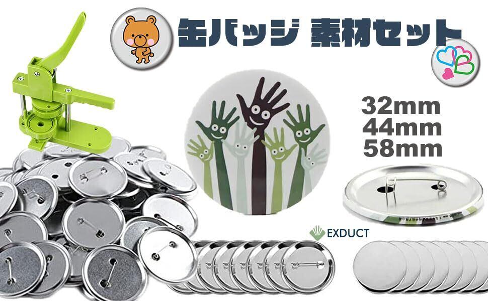 EXDUCT 缶バッジ 素材セット 100個セット 缶バッチメーカー 缶バッジマシーン用 パーツ 素材 DIY 製作 パーツセット 44mm