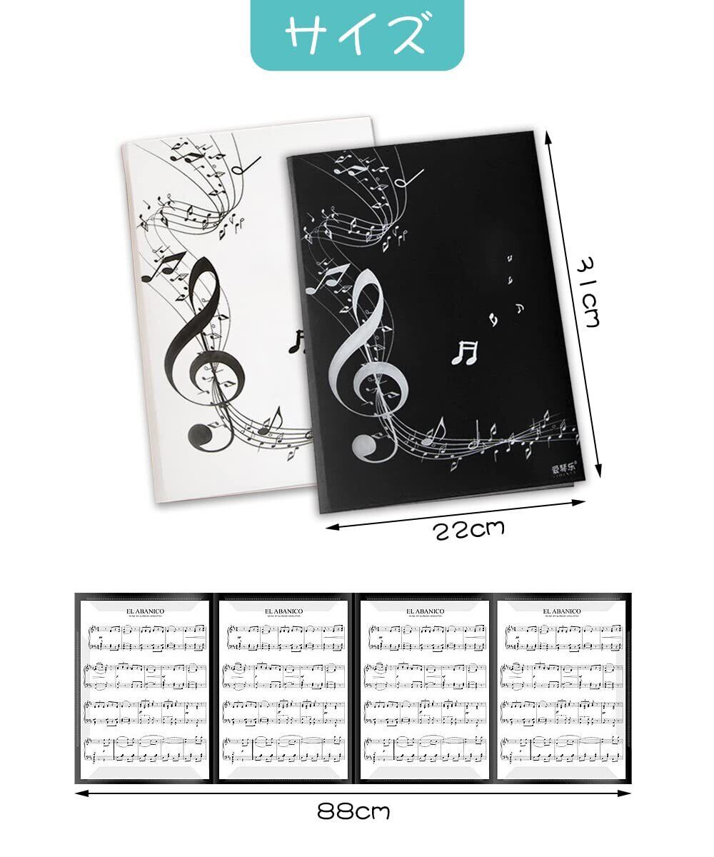楽譜ファイル 4面 6枚収納可 A4サイズ 書き込みできる 反射しない 4ページ展開 譜面 作曲 レッスン ファイル カバー ピアノ 電子ピアノ アクセサリー 2色 (ホワイト)