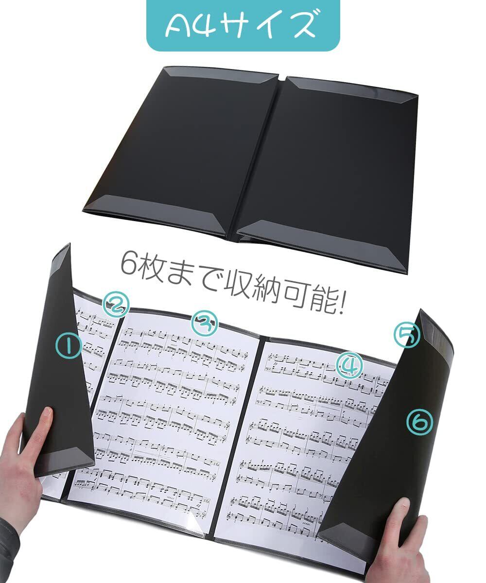 【6枚楽譜収納】4ページ展開で最大6枚まで収納可能!長い楽譜を練習する時に、何度もページをめくる必要はありません。