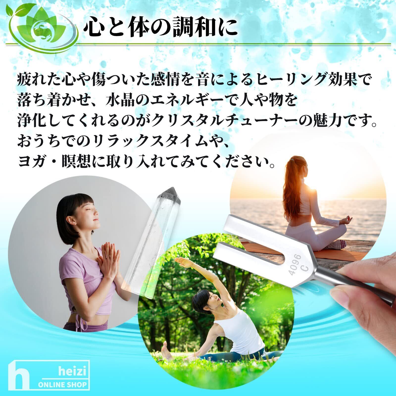 heizi 音叉 クリスタルチューナー 4096Hz 水晶 セット ヒーリング 収納袋付き (ブルー)