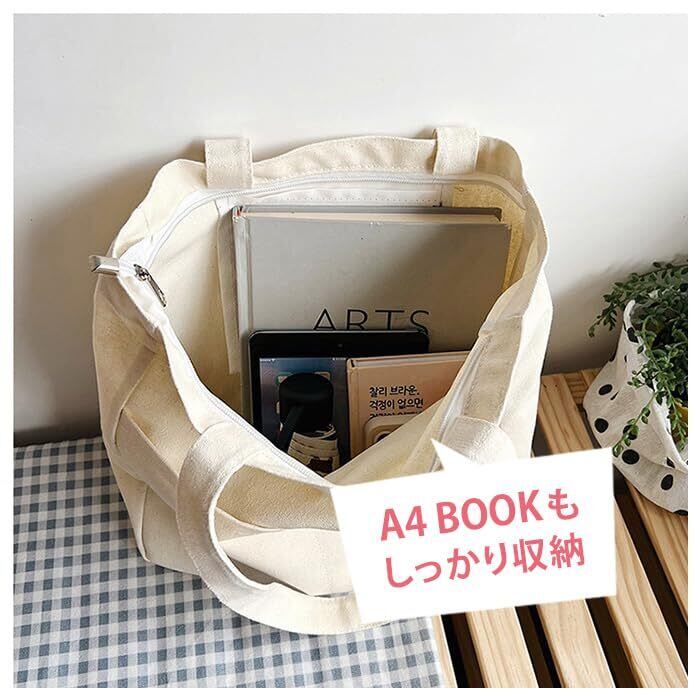 [deoway] トートバッグ キャンバス トートバック A4 大容量 ショルダー トート キャンバス ショルダーバッグ トートバッグ レディース メンズ 無地 ファスナー付き | BASE SHOP