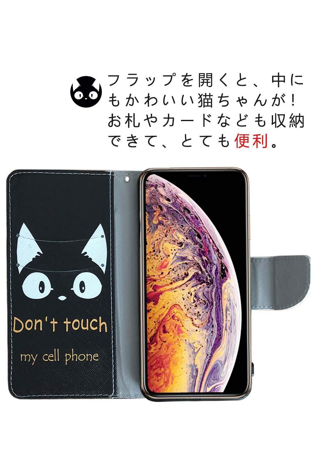 iPhone 15 pro ケース 手帳型 スマホケース かわいい 猫 黒猫プリント ストラップホール付き レザー カバー アイフォン15 プロ wbao