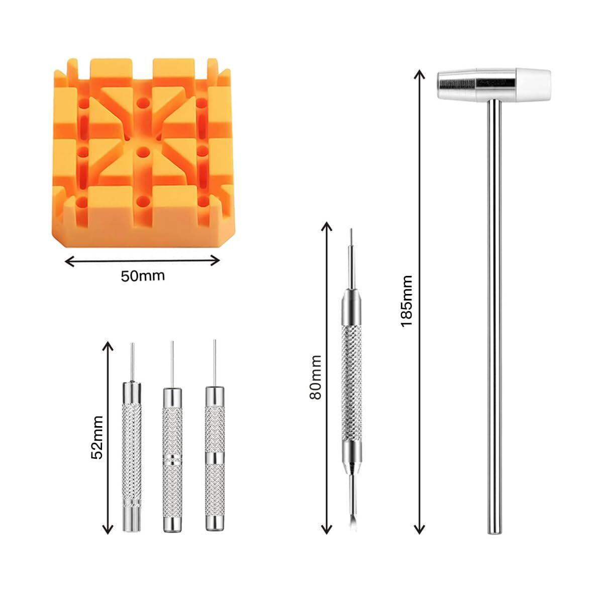 セット内容:金属ハンマー*1 、ストラップ交換工具*1、時計バンドホルダー*1、パンチ針*1 、金属製時計バンドリンクリムーバー*1、交換針*16、バネ棒*20(24/22/20/18/16mm)。