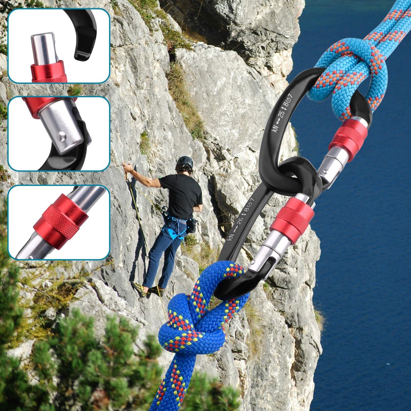 TRIWONDER ロックカラビナ 登山釦 超軽量 アルミカラビナ クライミング ロッキンカラビナ ハンモック キャンプ用 セルフロック バックパックフック 脱落防止