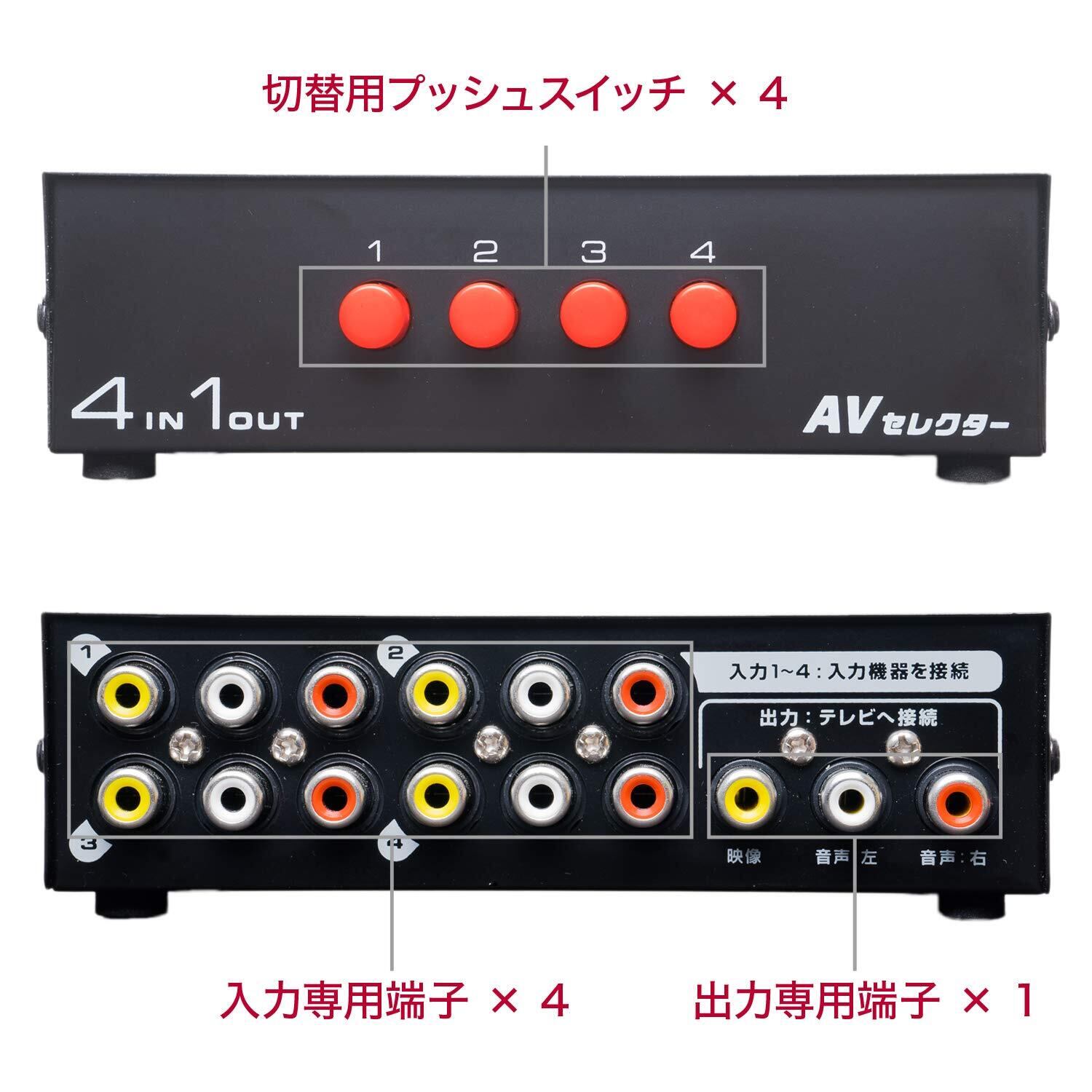 4入力1出力に対応した、RCA端子専用のAVセレクター