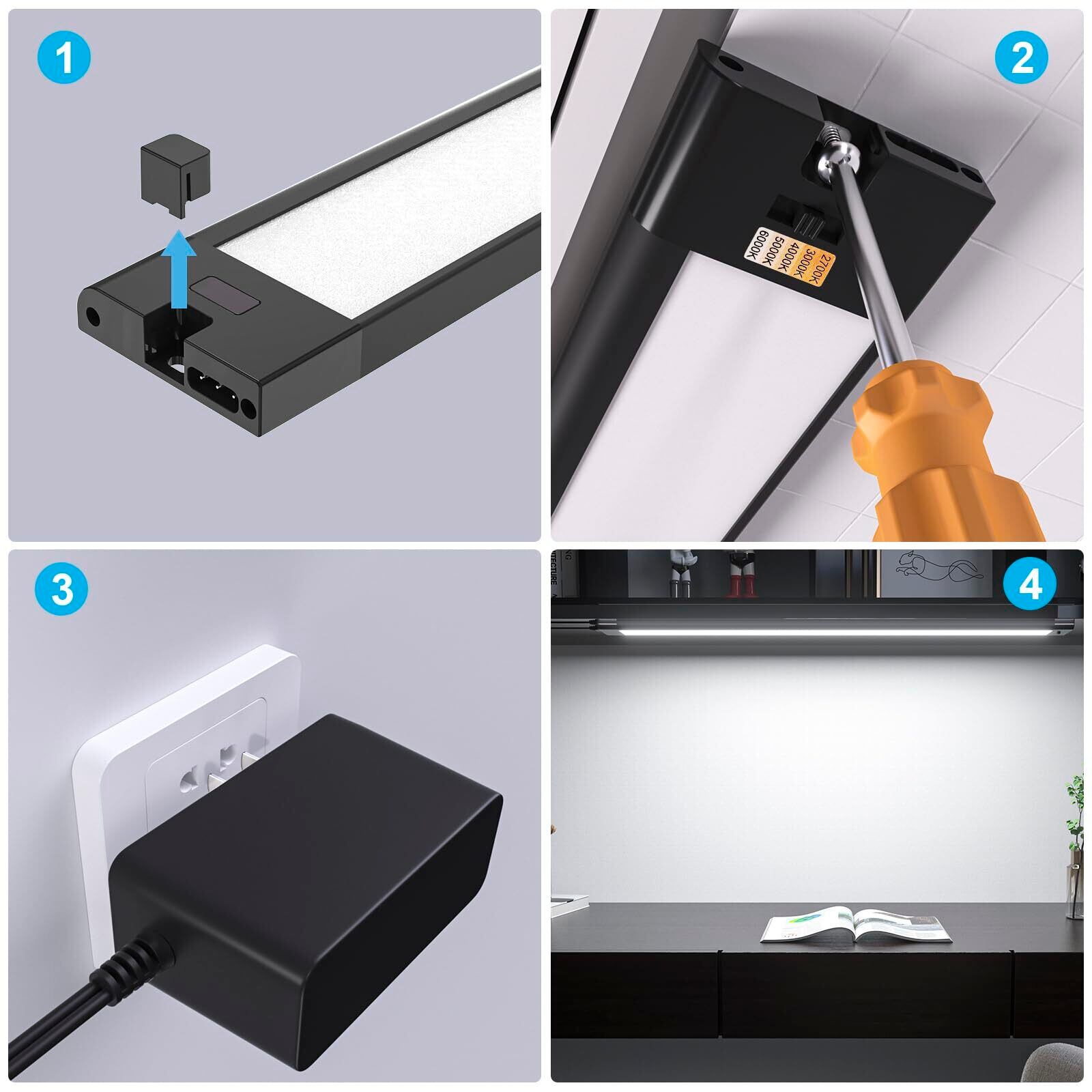 【工事不要・取付簡単】電気工事不要、ネジで棚下に簡単に設置可能。キッチン・洗面台に、クローゼット・納戸・天井・壁面にネジで簡単取付。PSE認証済、電源アダプターも付、入力電圧:AC100-240V,50/60Hz 日本国内使用だけでなく、海外も使用可能。