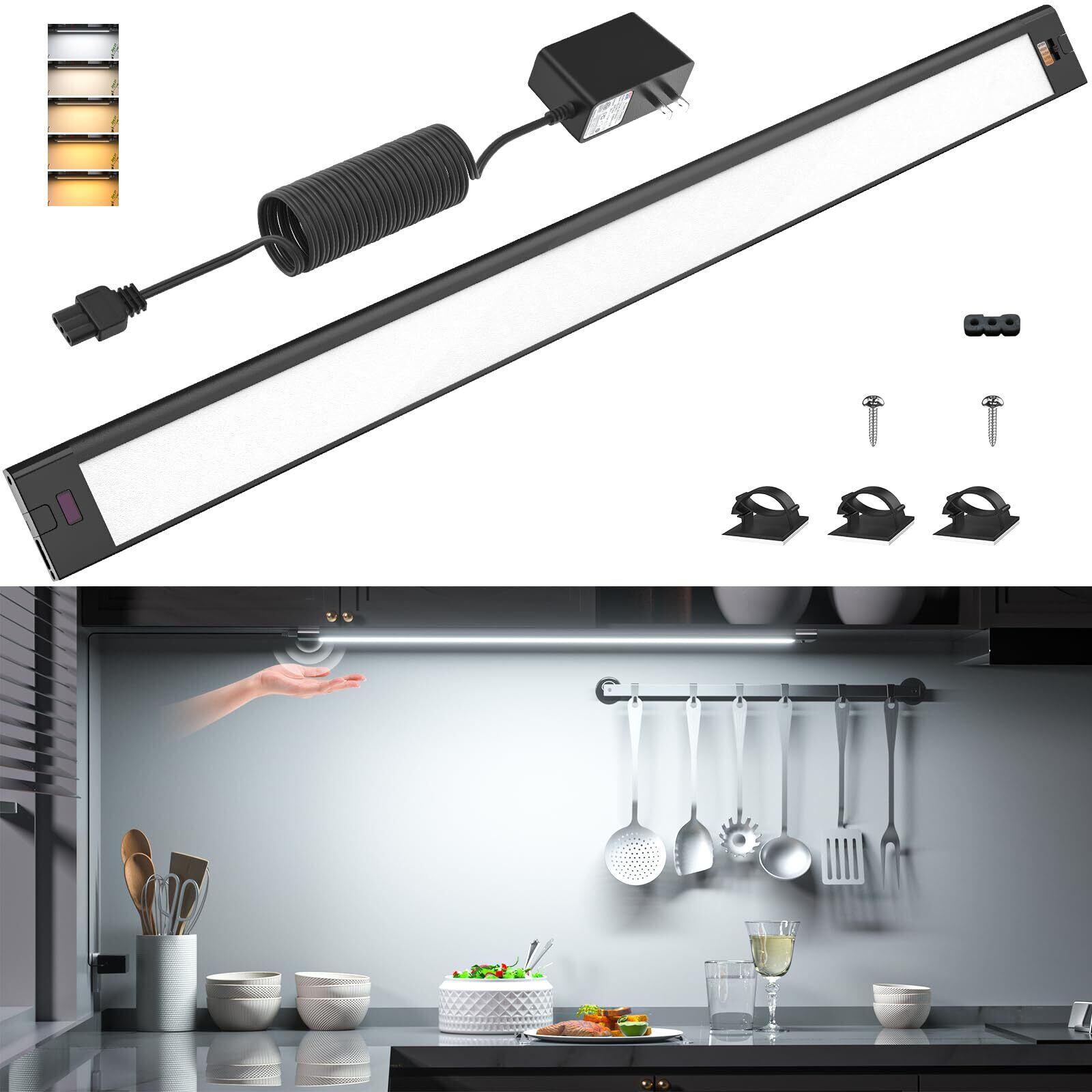 WOBANE LEDキッチンライト 60cm バーライト 流し元灯 調光調色 タッチレスセンサー 1200lm 工事不要 棚下・ キャビネット照明 led 間接照明 キッチン 洗面所 台所 省エネ 手元灯 PSE認証済 ブラック