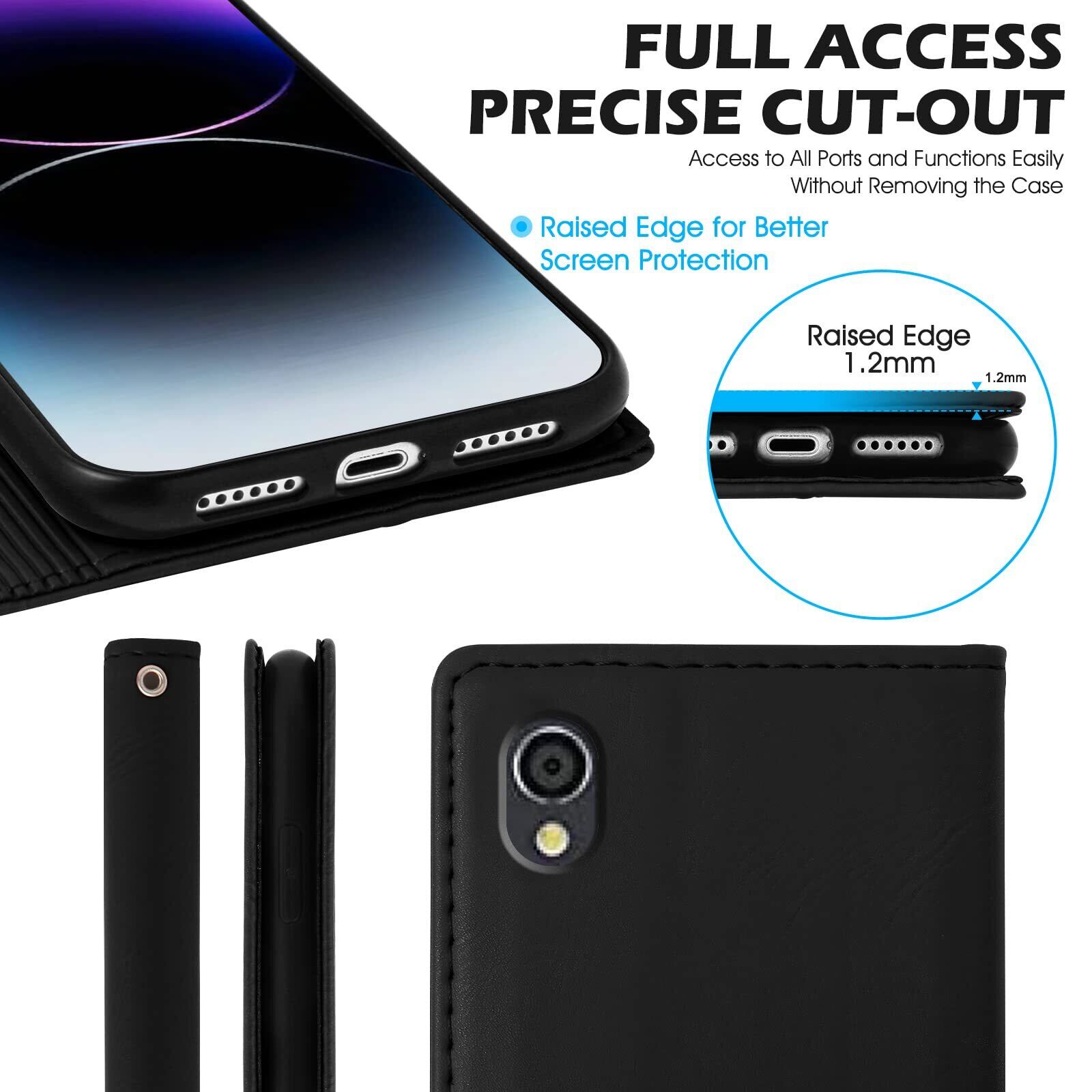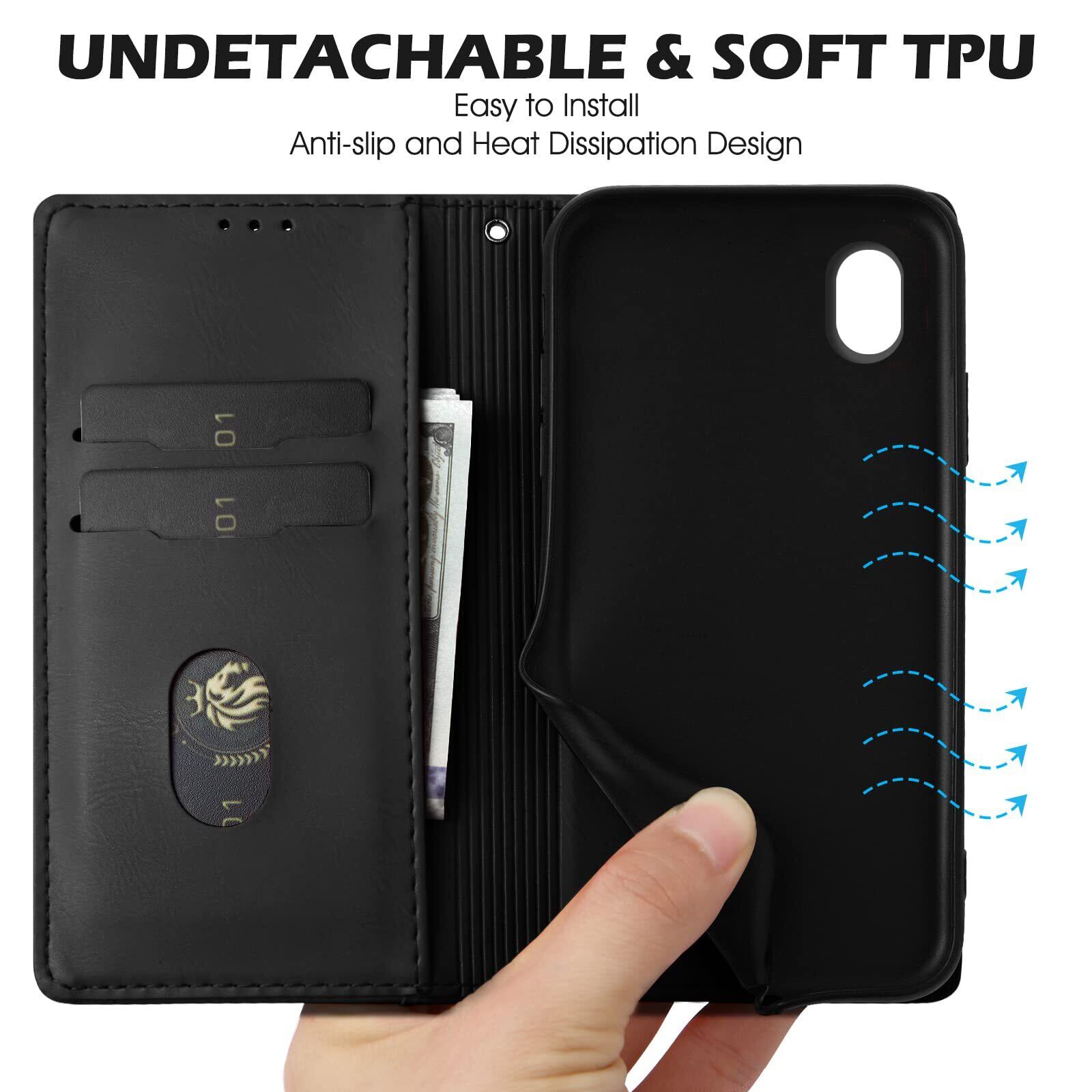 Kedic AQUOS sense ケース 手帳型 AQUOS sense lite SH-M05 ケース 可愛い笑顔の猫模様 手作り携帯カバー Android One S3 カバー AQUOS sense SHV40 SH-01K ケース おしゃれ カード入れ 財布型 と横方向のスタンドが 多機能 AQUOS sh01k カバー 内蔵マグネット式 純色シンプルデザイン AQUOS sense lite ケース 黒