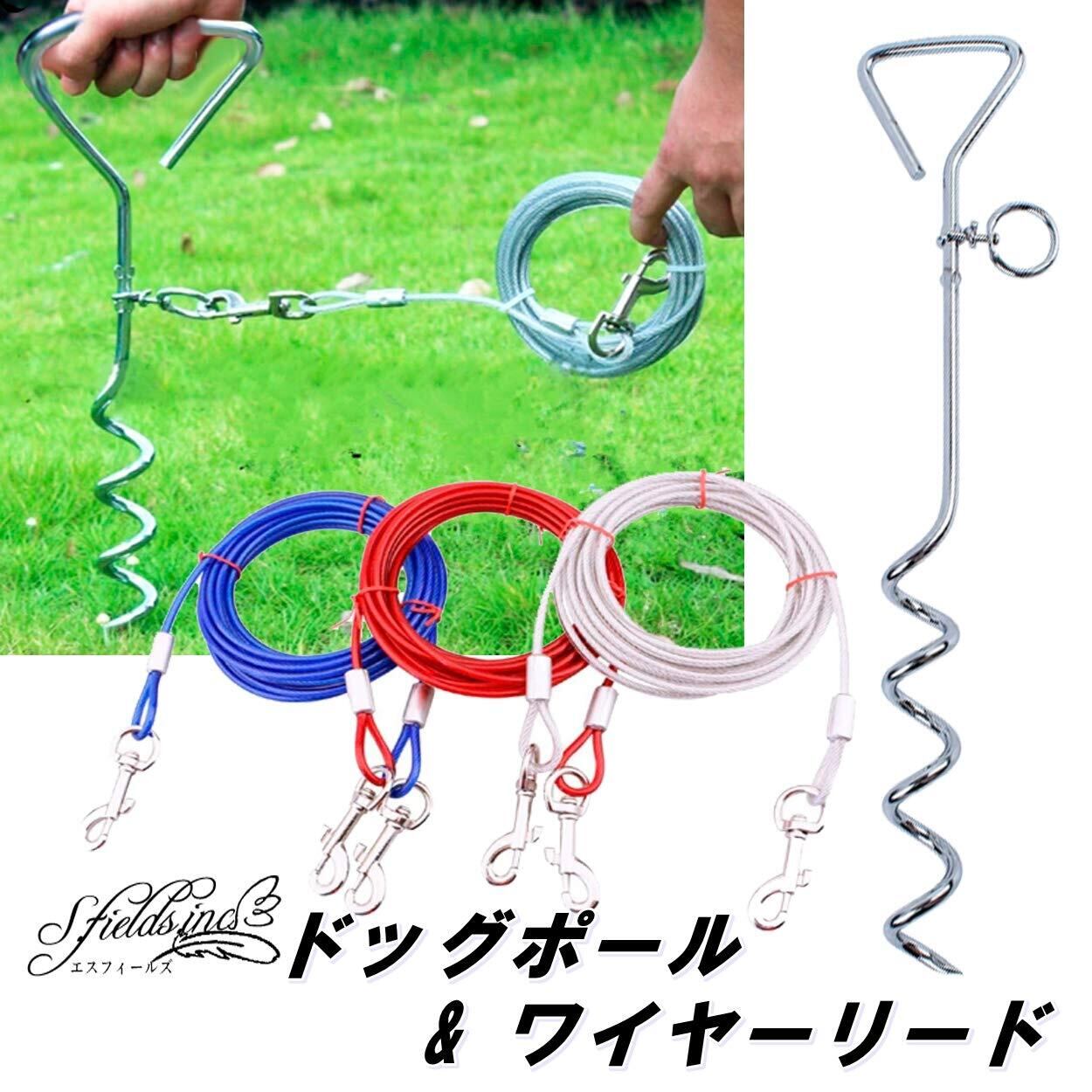 埋め込み式の小型・中型犬用 係留ステッキ&ワイヤーリードの2点セットです。ブルー・シルバー・レッドの3カラーをご用意しました。