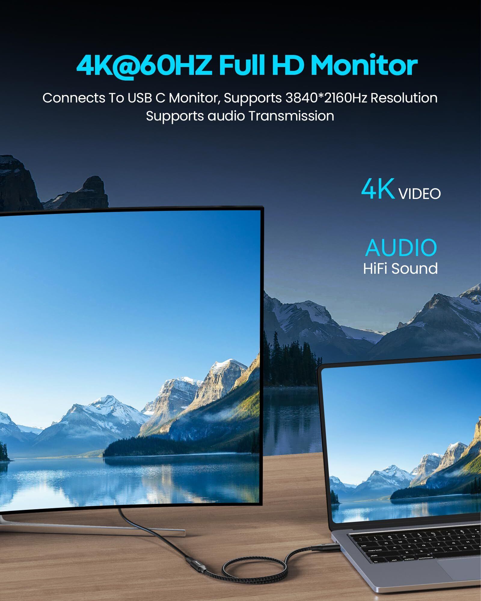 【4K@60Hz映像出力対応】USB C ポート出力に対応するのディスプレイに接続し、最大3840x2160@60HZ 4Kのビデオ信号伝送を実現可能、さらなる高精細映像を楽しめます。注!入力デバイスと出力モニターのCタイプポートの両方がビデオ入力および出力機能をサポートしていることを確認してください。